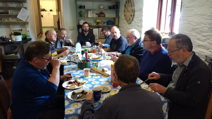 In an effort to avoid sharing my snoring with the rest I kipped in the back of the car - dark, decently comfy and quiet. Or it would have been if (I’m not making this up) John (stepmotheratomic) hadn’t woken me up at 06:45 yesterday, rummaging about in the back of his van for a Stanley knife to score the pork fat. Then BobC added insult to injury at 05:45 (!!) this morning, packing his car and departing for Cumbria. It seems I did have a close escape though. Unbeknownst to me as I was climbing into the sleeping bag last night Tuffbob was prowling the car park and mistook the lights in my car for a dogging venue ! Jeez, the things that go on in Devon …