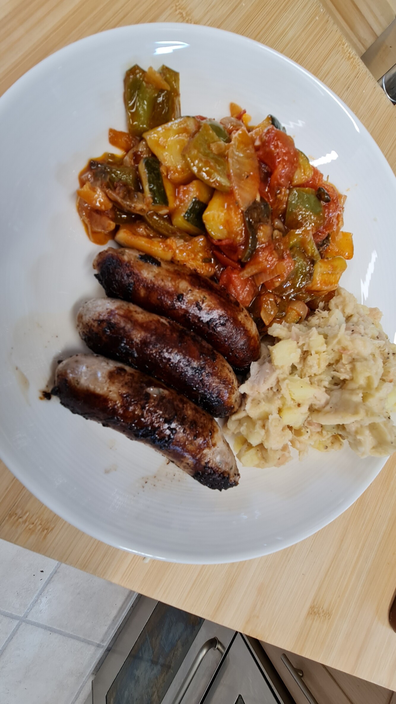 tonight - fennel sausages, butter bean mash thing, bottom of the fridge rat’