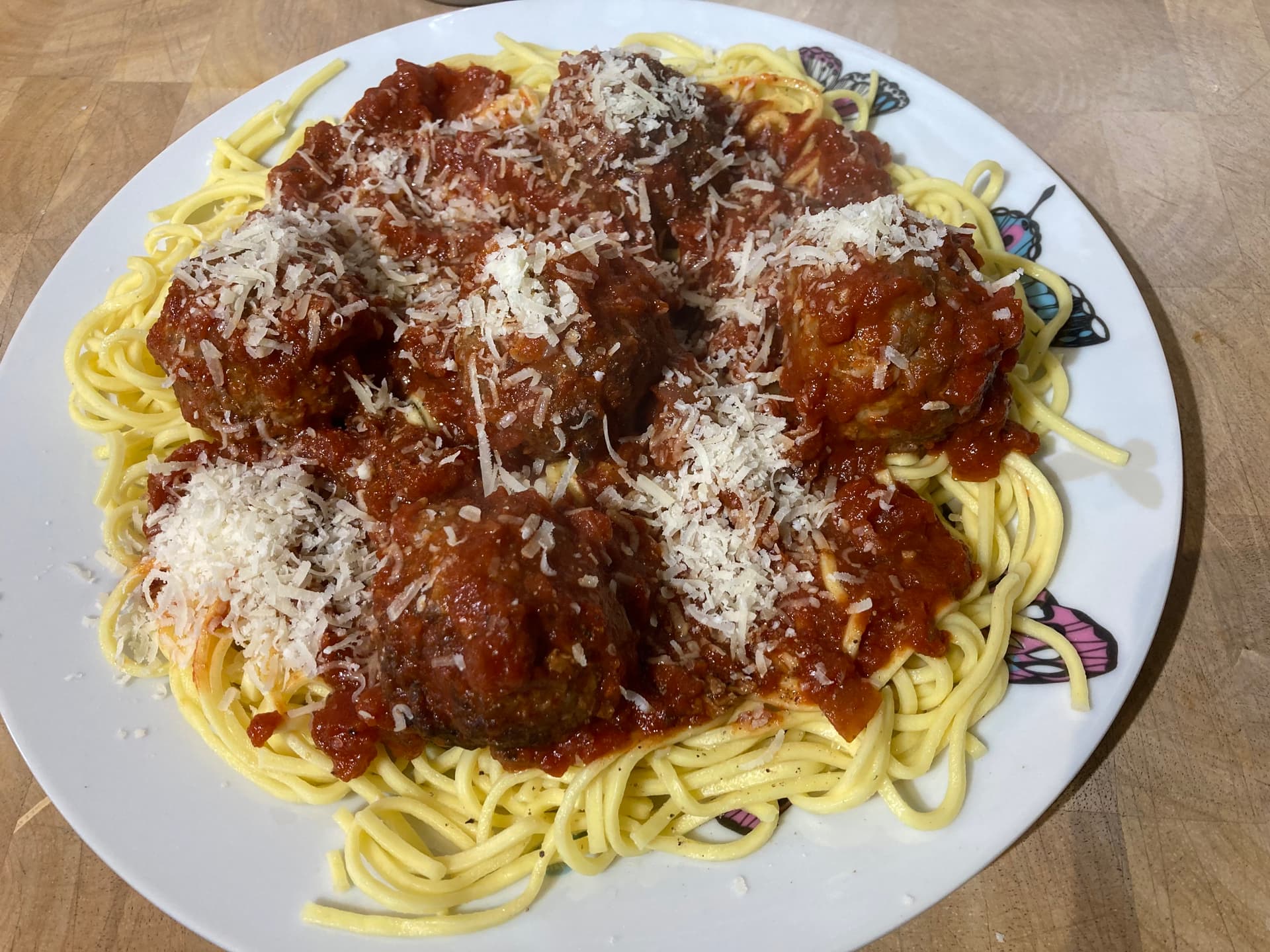 Beef/Pork meatballs, best batch yet. Also added a little ground chilli flakes to the sauce which gave it a slight kick, but not too much.