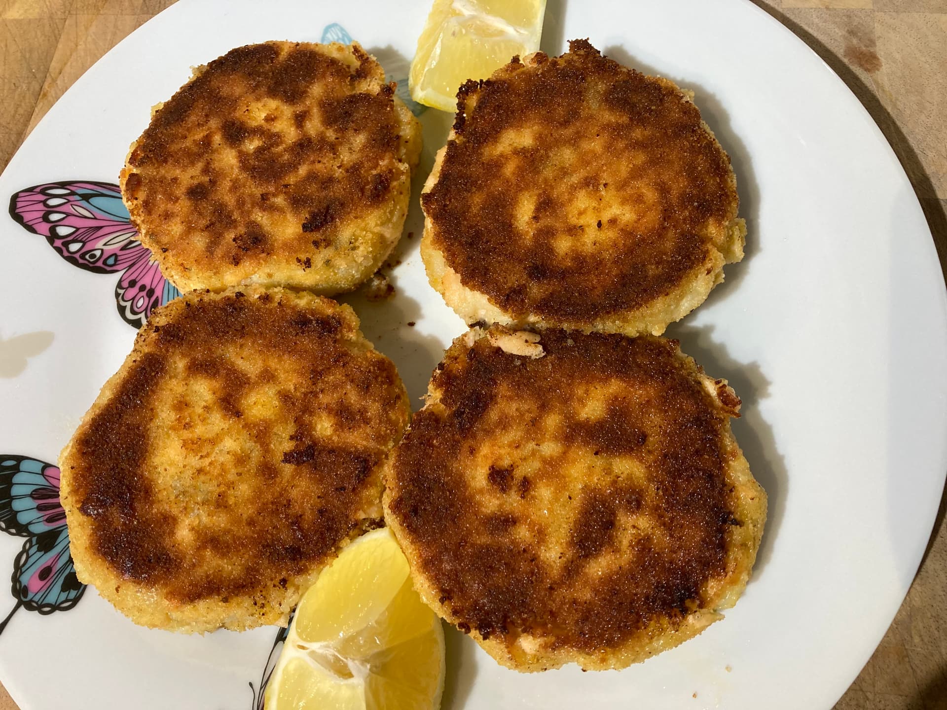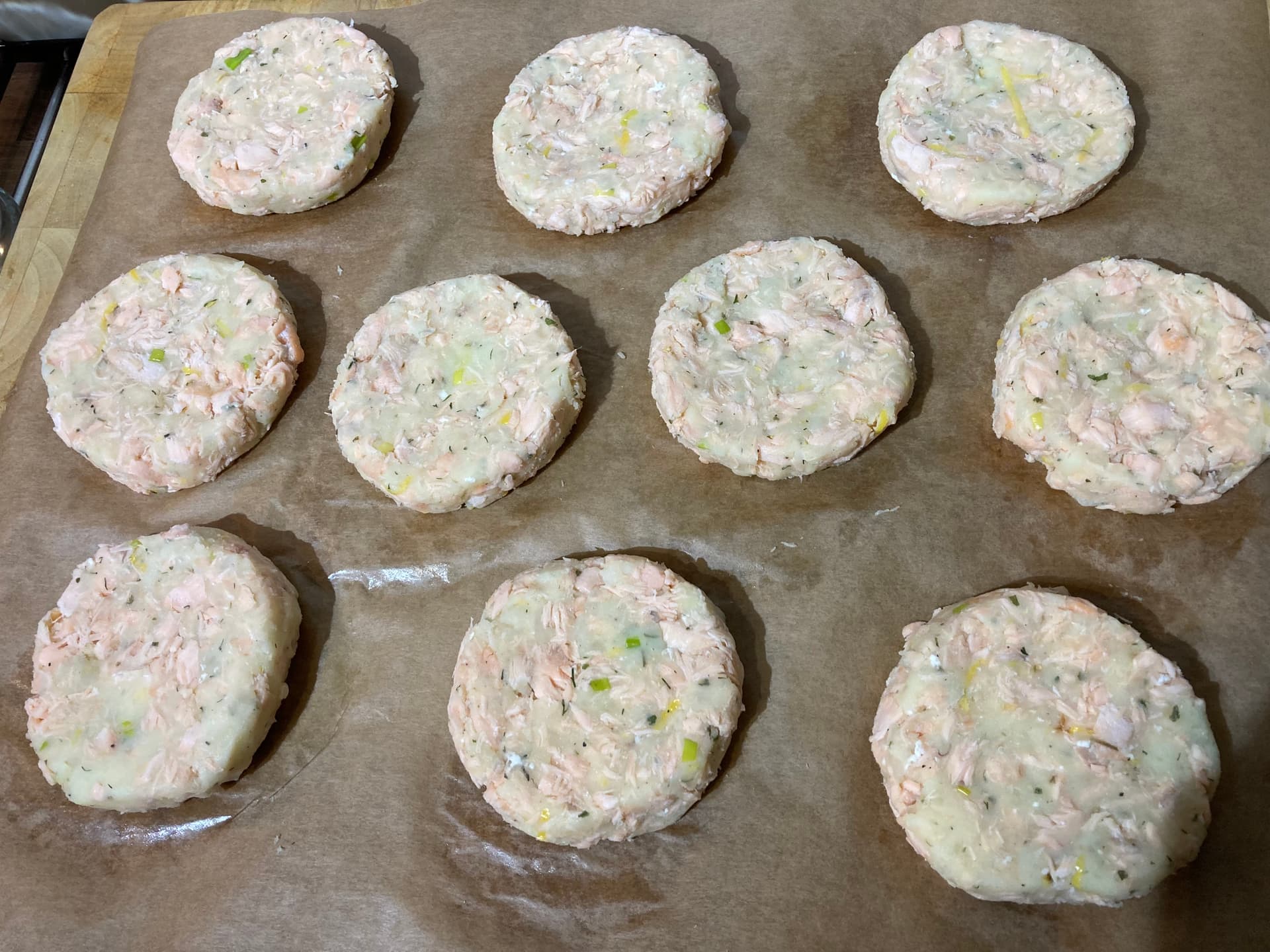 Salmon fishcakes - at least 60% fish - there’s a kilo of salmon fillet in there.