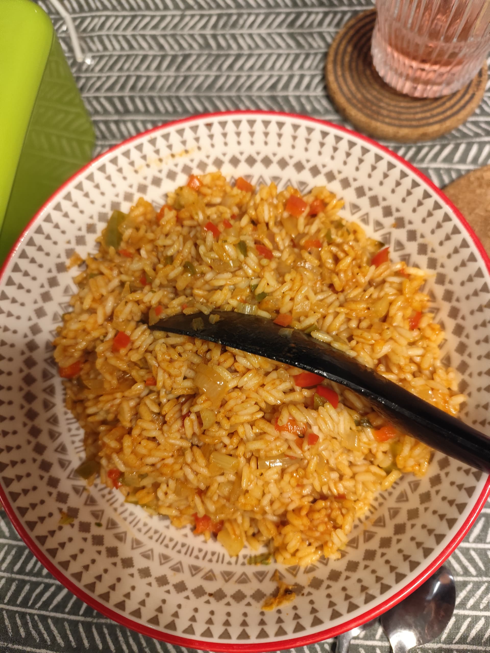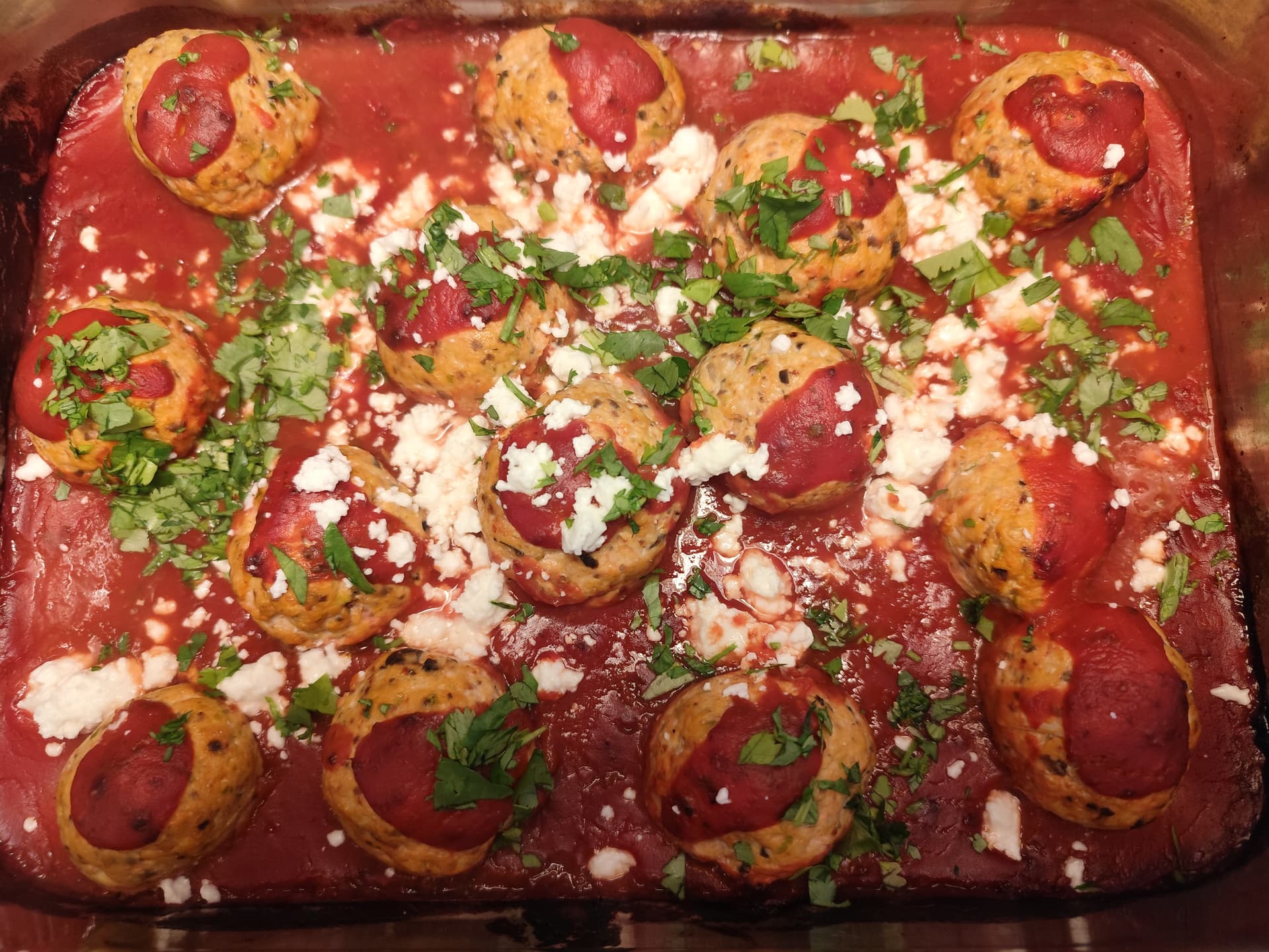 Spanish rice and those chicken ,olive and feta meatballs
