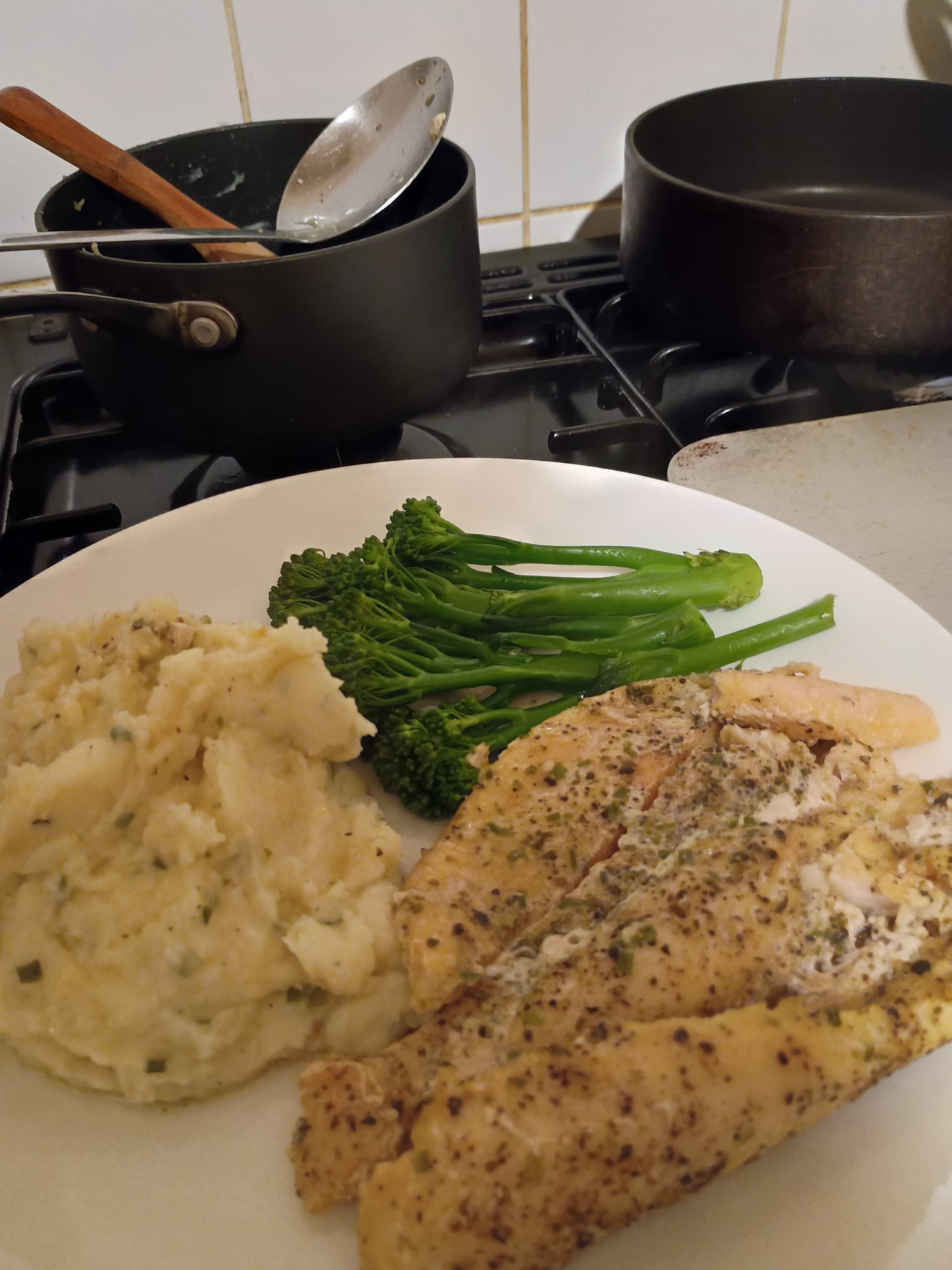 pepper. Served with creamy mash with chives + oodles of white pepper, slow roasted garlic & butter + crème fraiche & steamed tender stem broccoli