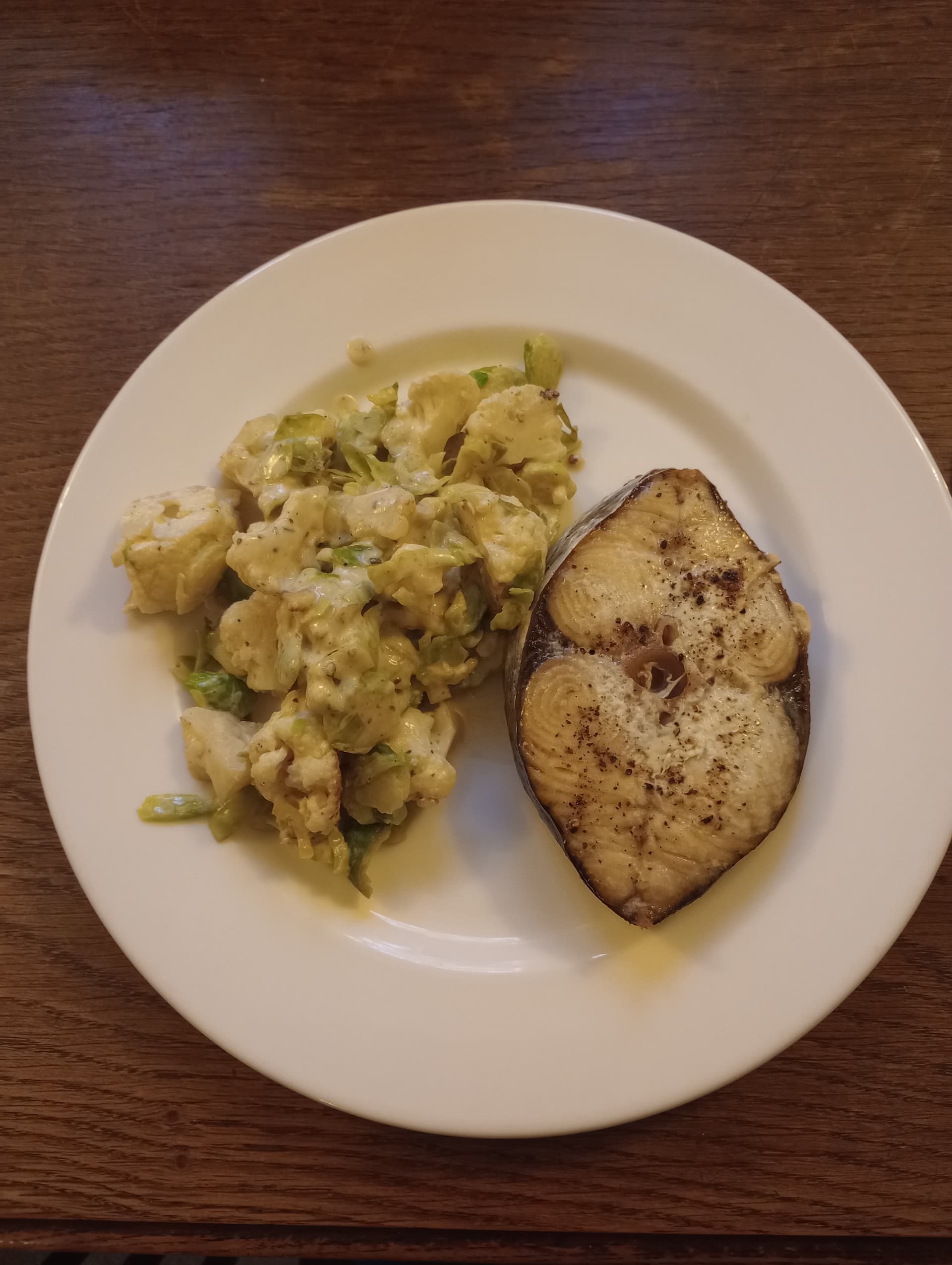Smoked basa fillets, oven baked in oiled foil parcel with oregano, chives ‘n cracked black