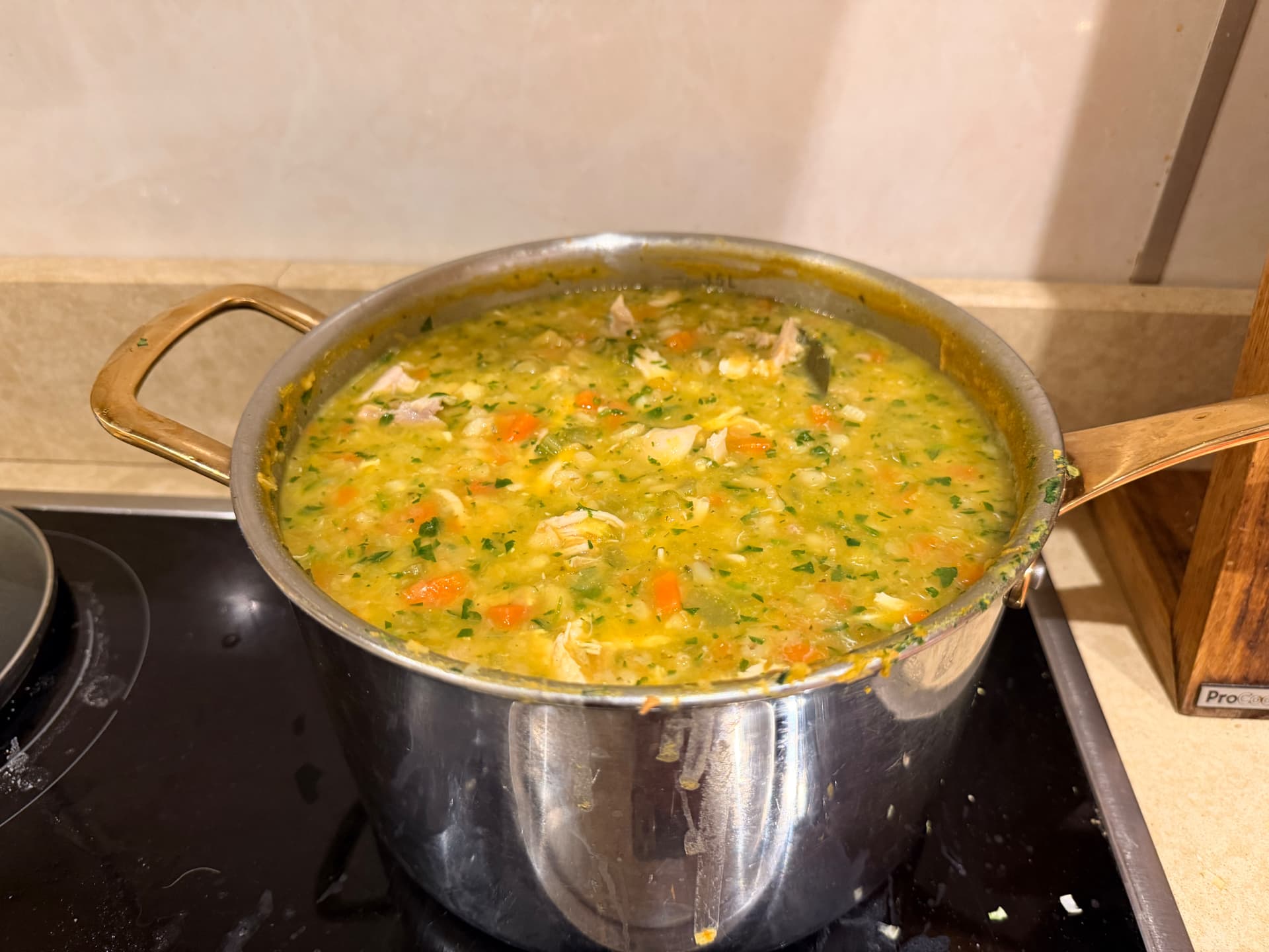 Three and Half litres of chicken broth made with yellow sticker m&s organic chicken thighs I picked up this afternoon. Plan is to batch it up once it’s cooled for healthy lunches this week.