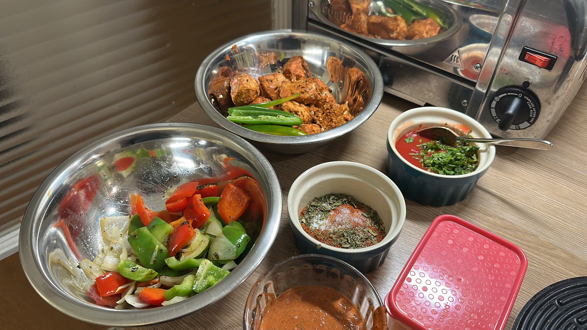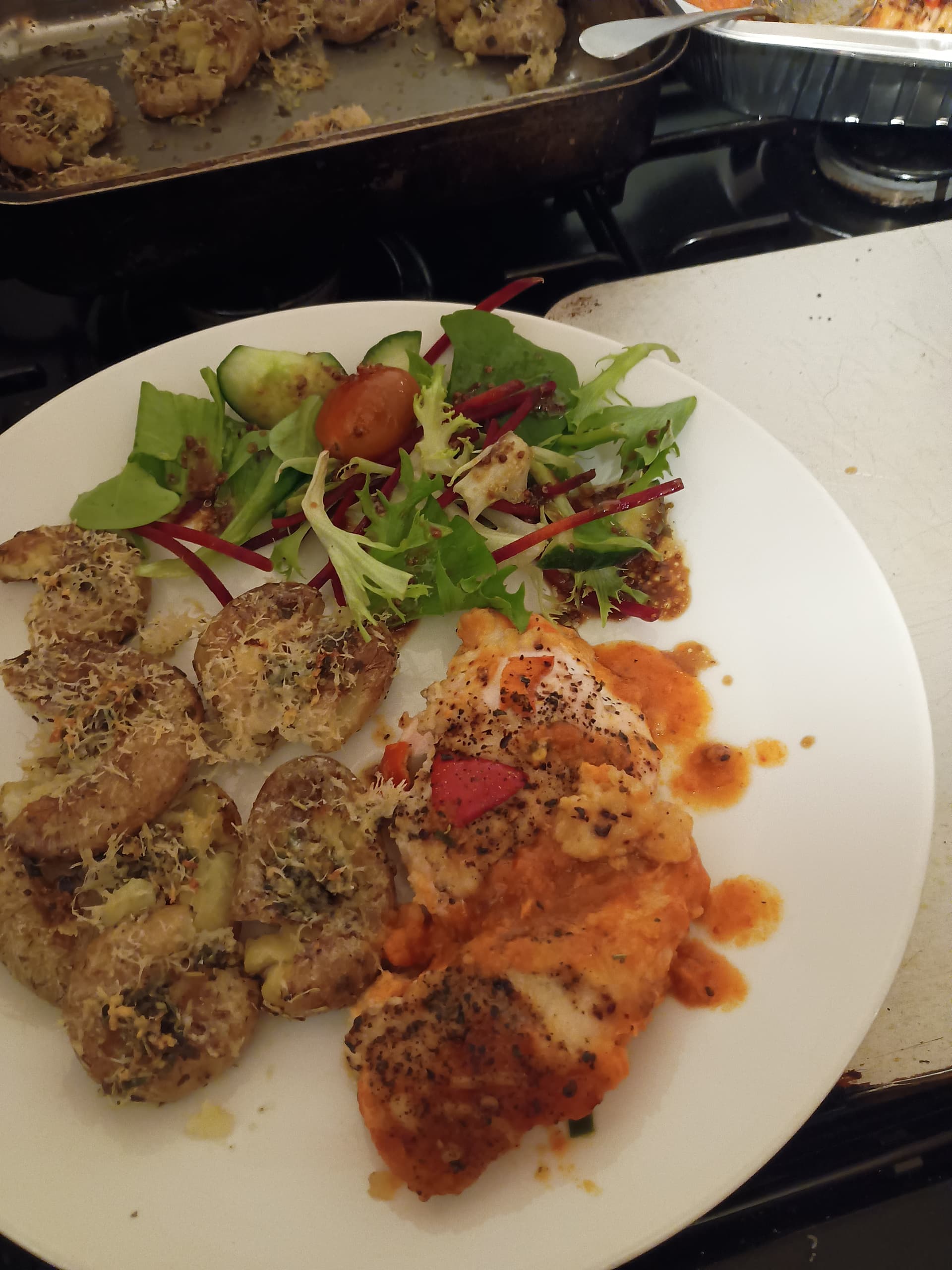 Served with Arrabbiata chicken fillet in tomato sauce with peppers & mozzarella with a side salad wiv balsamic dressing.