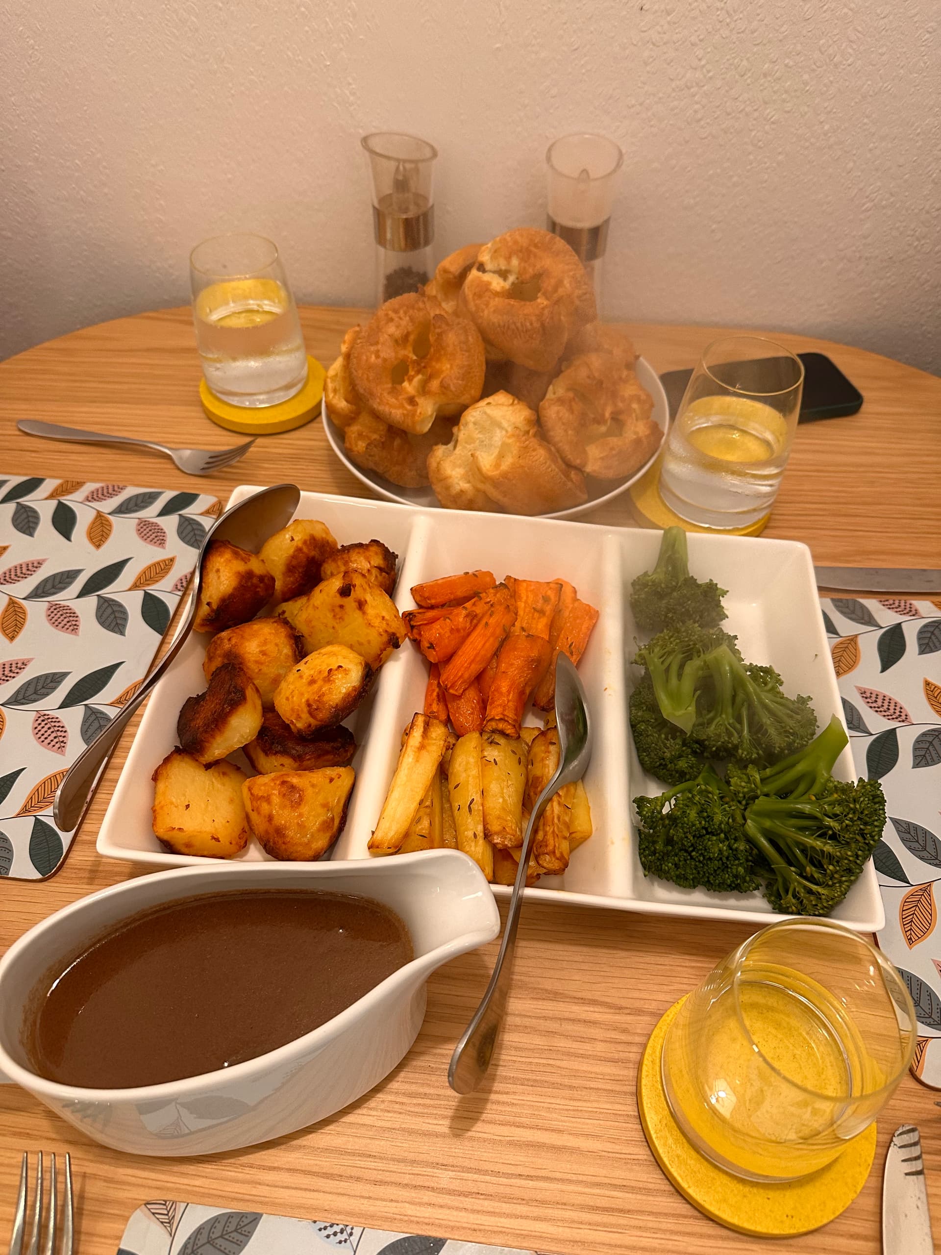 Fork crushed skin on herby baby roast potatoes with dill tops, oregano, Rosemary, parsley ân chives. Finished with garlic butter ân Parmesan Regganio.