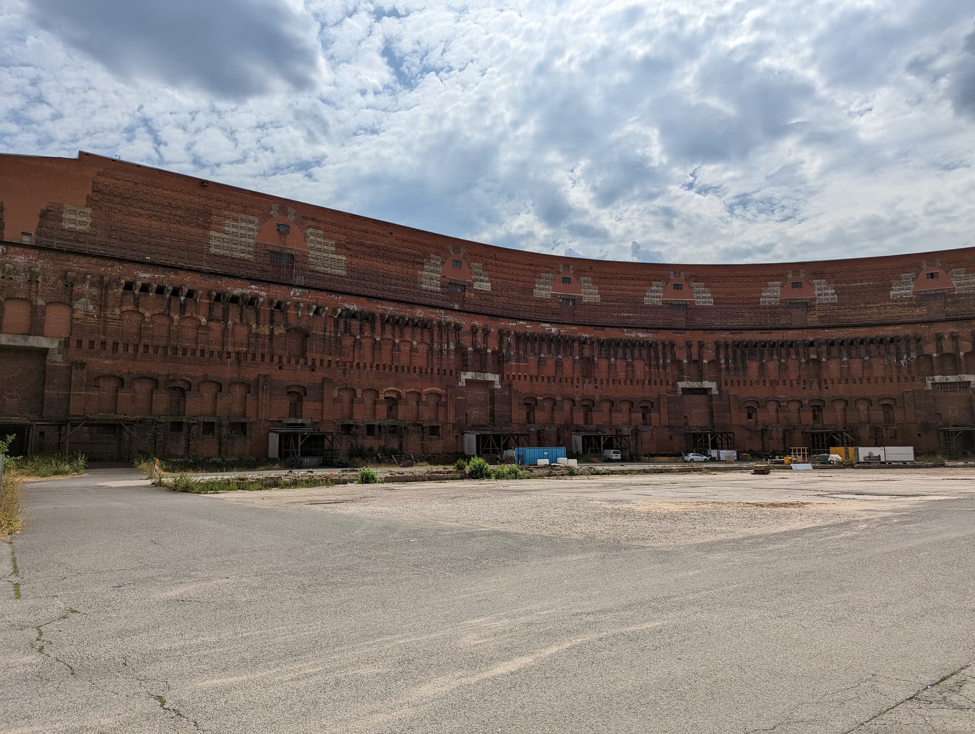 And on the same site, an absolutely batshit piece of fascist gigantism, the Kongresshalle designed by Franz and Ludwig Ruff.