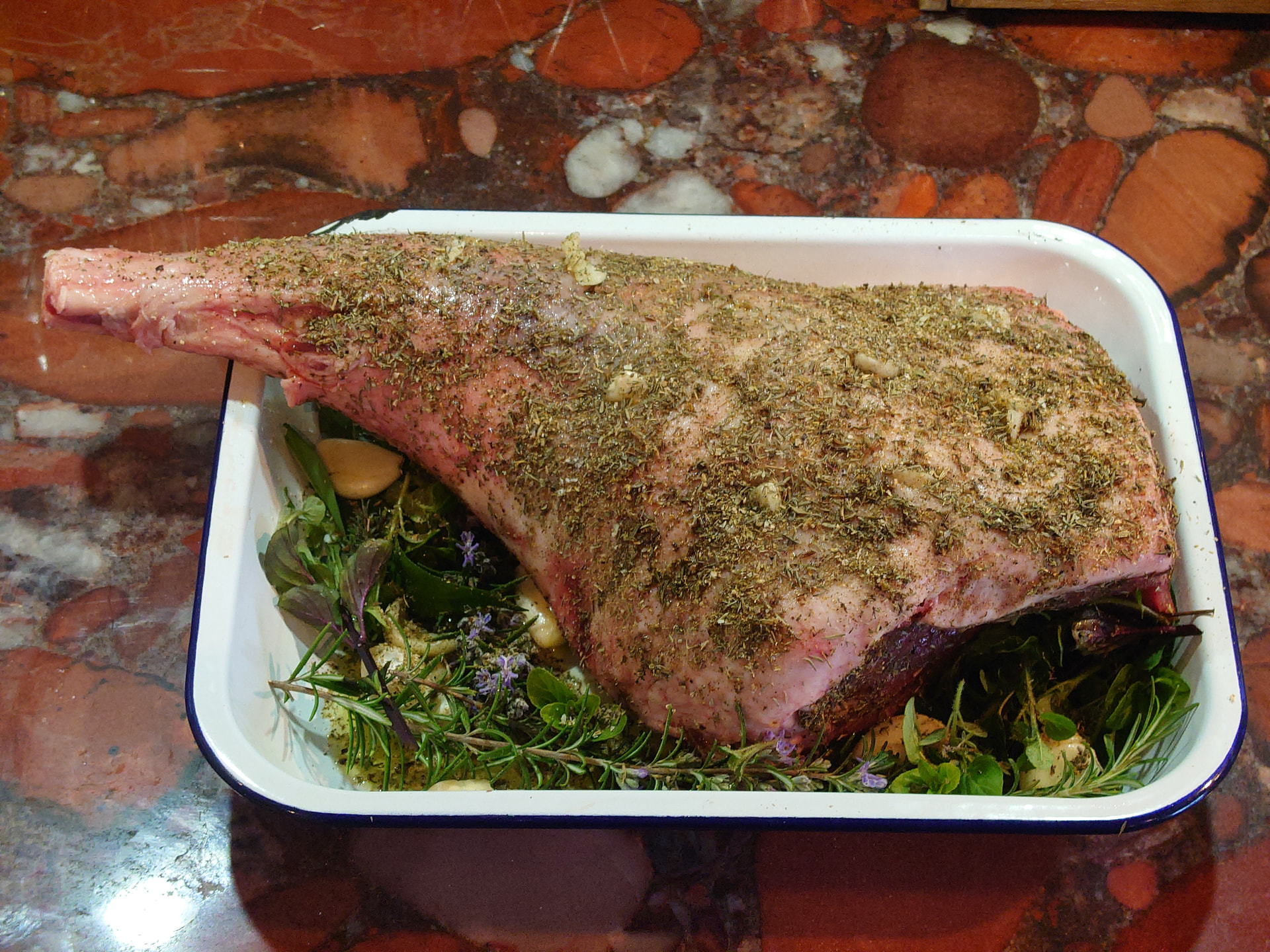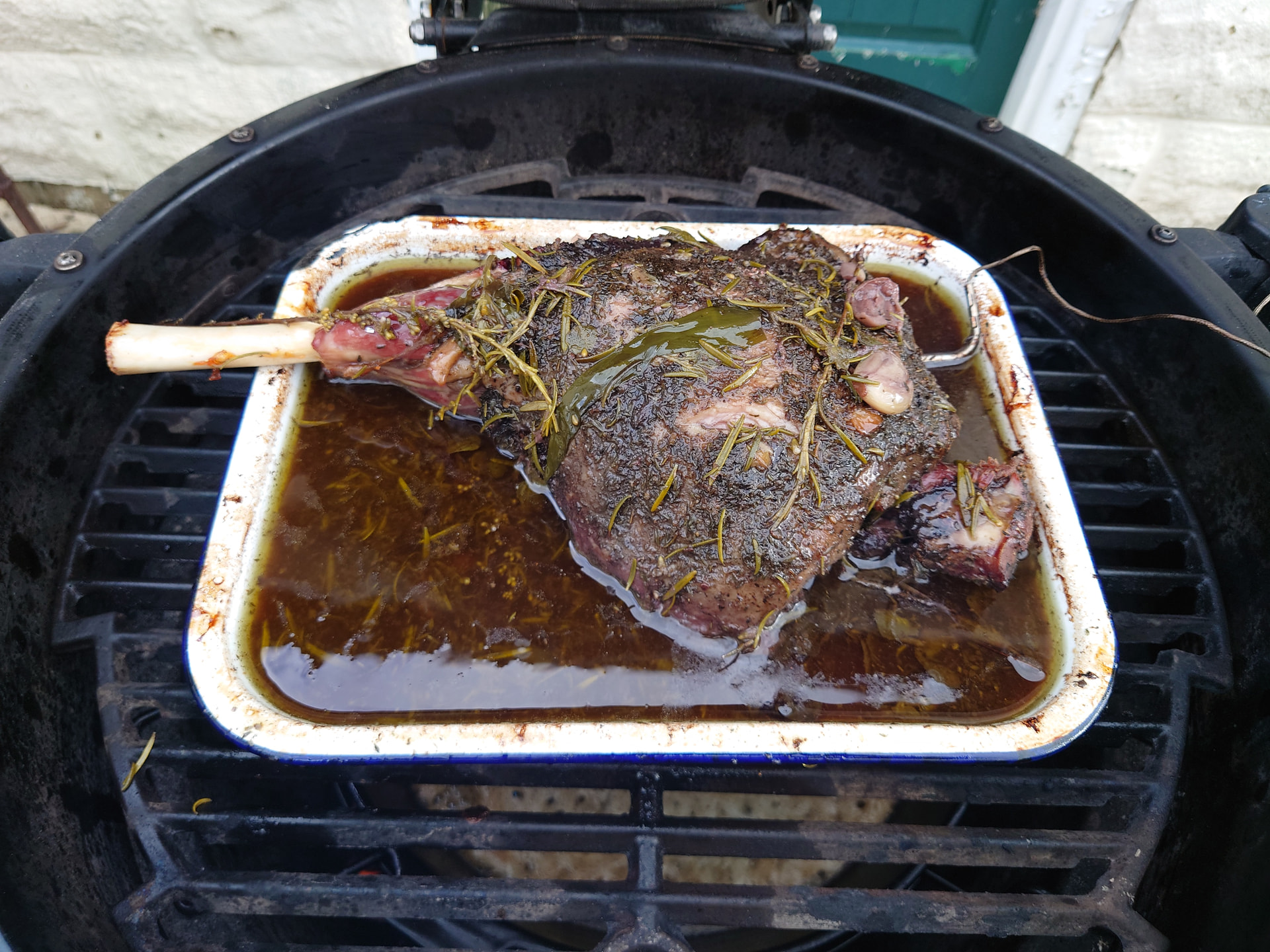 Sundays Lamb getting to know the Herby flavours ready for an all-day visit to the BBQ in a bath of Red Wine.