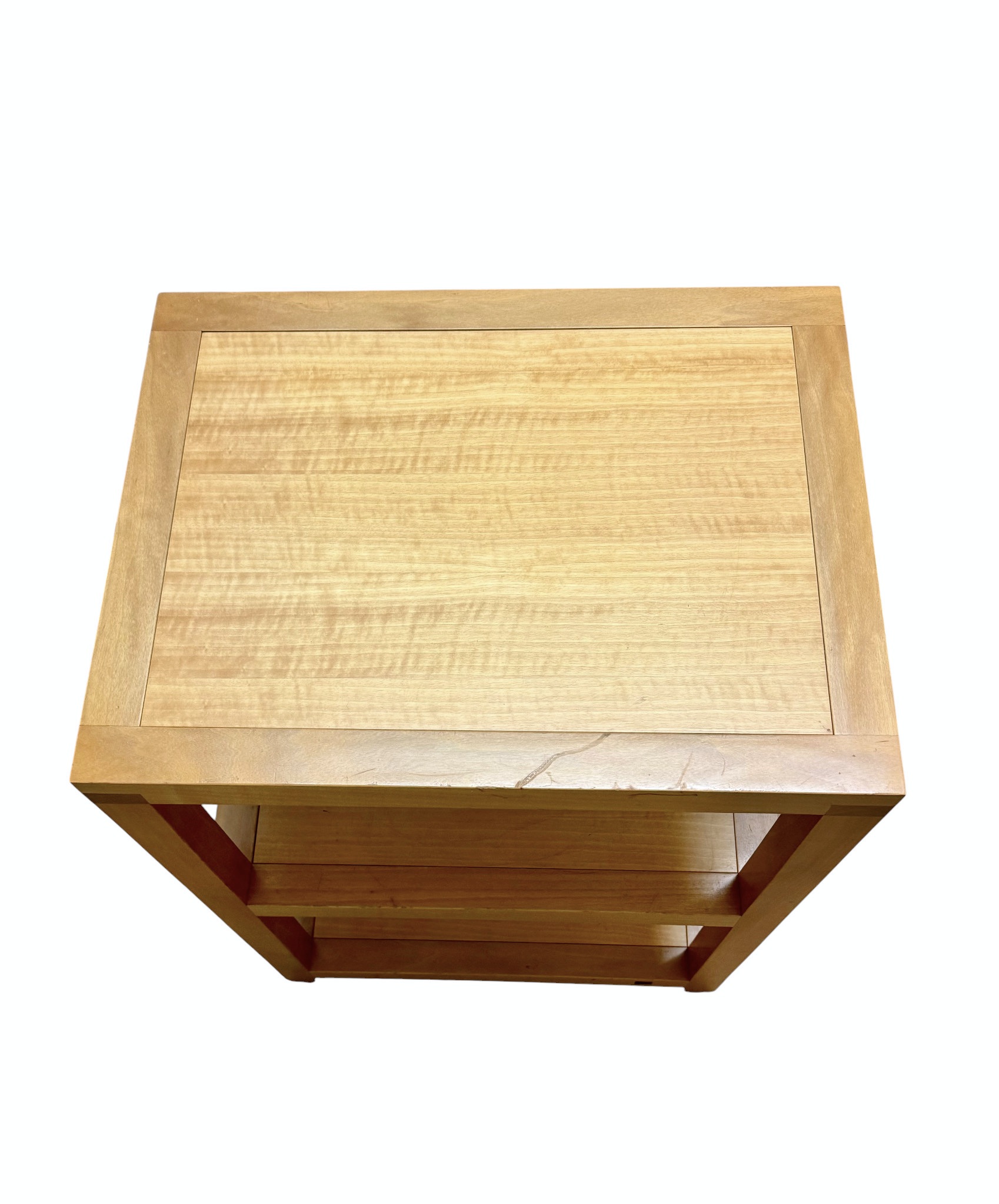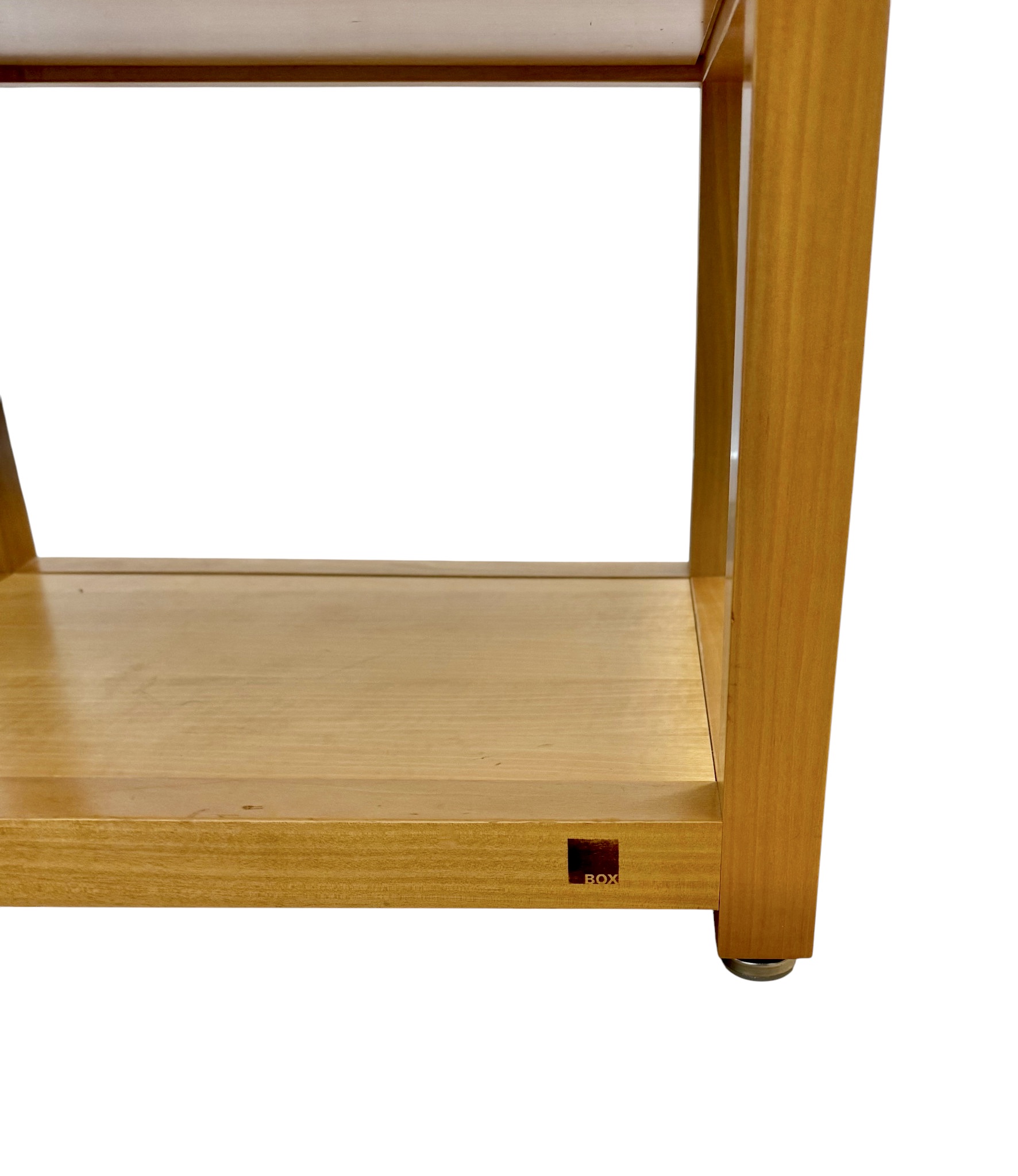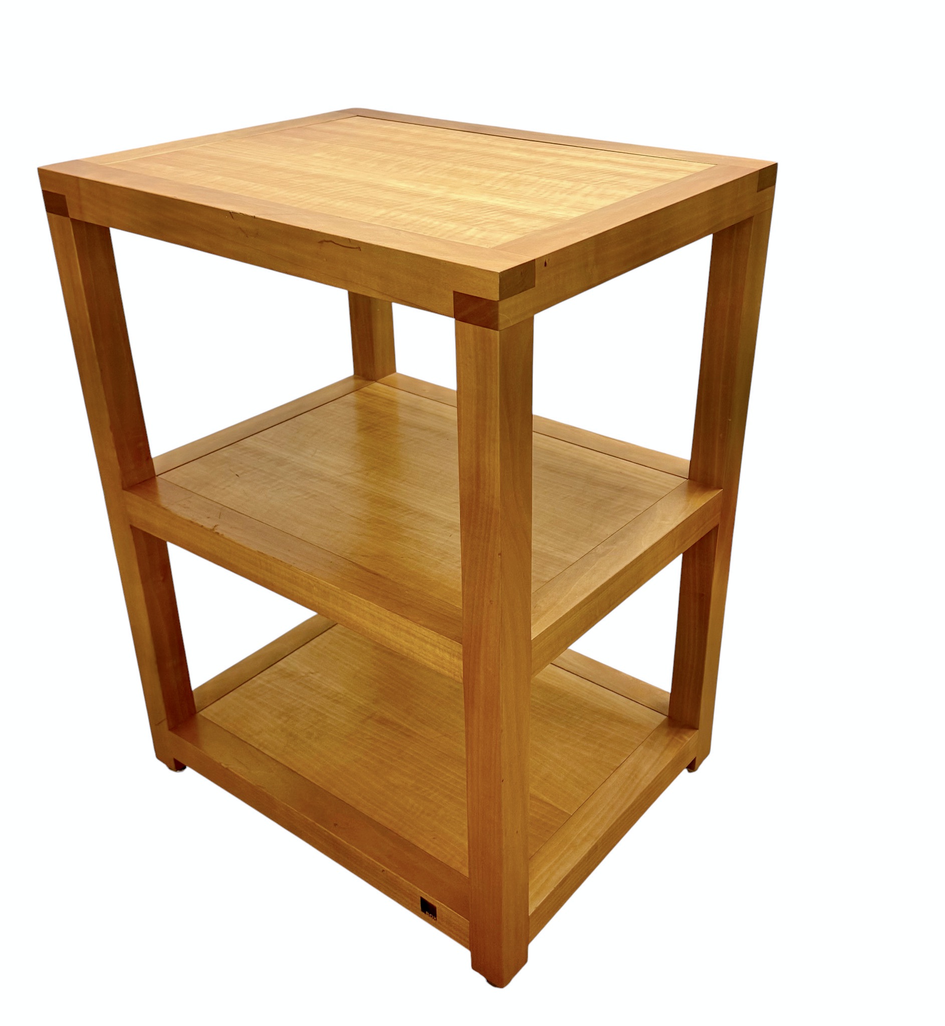 Beautifully made Box Furniture Co. three-tier rack. Proper joinery, solid hardwood shelves, and that understated mid-century studio vibe they’re known for. Definative used to sell these, I think Lotus has them now - This one came direct from New York.