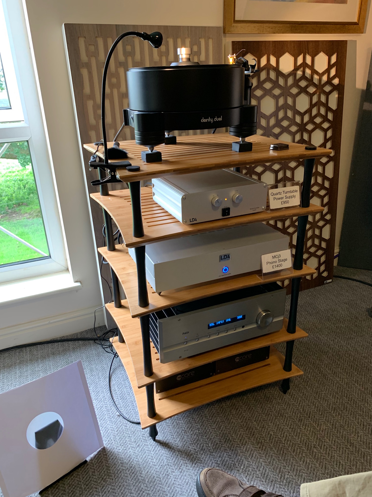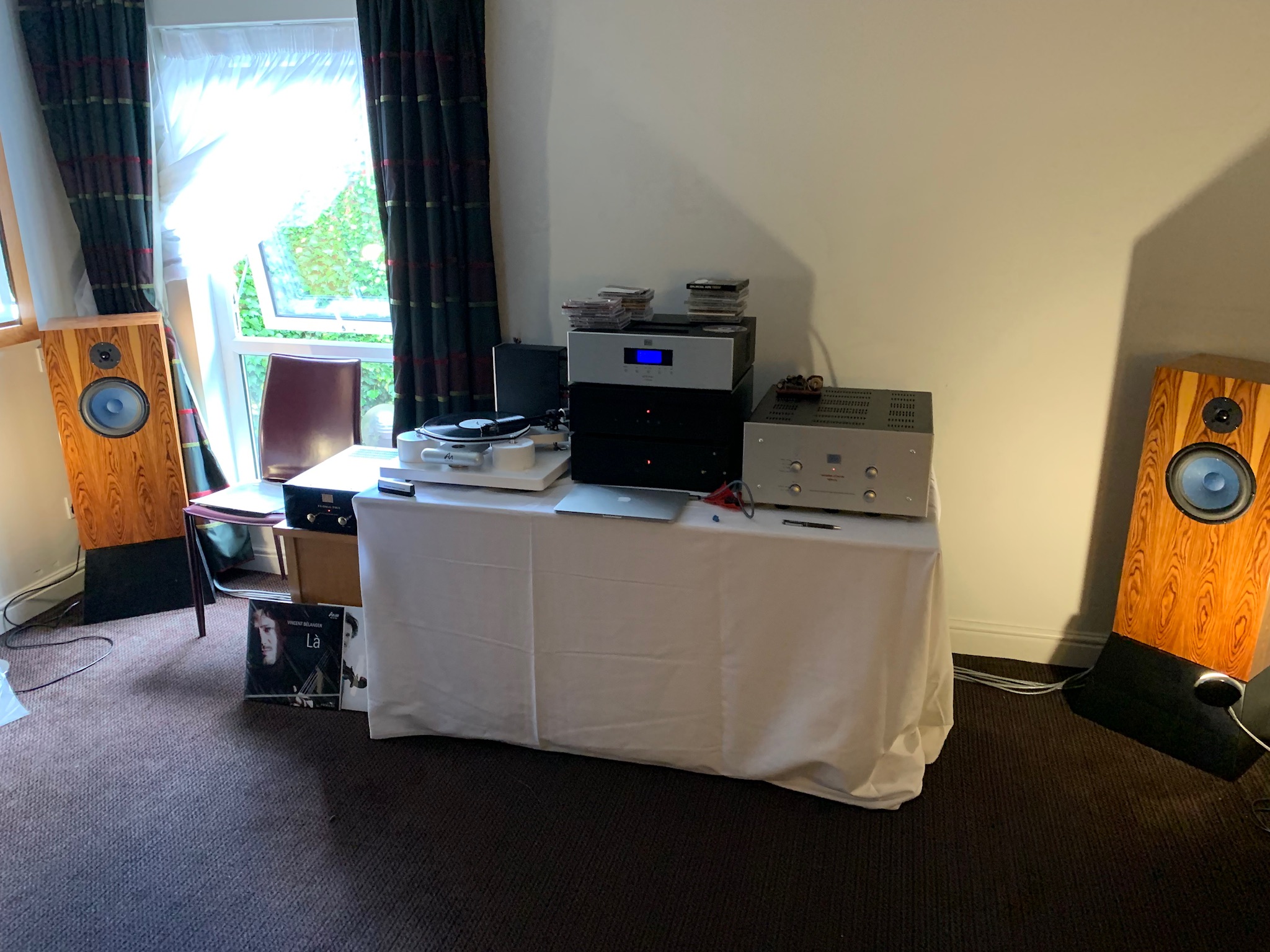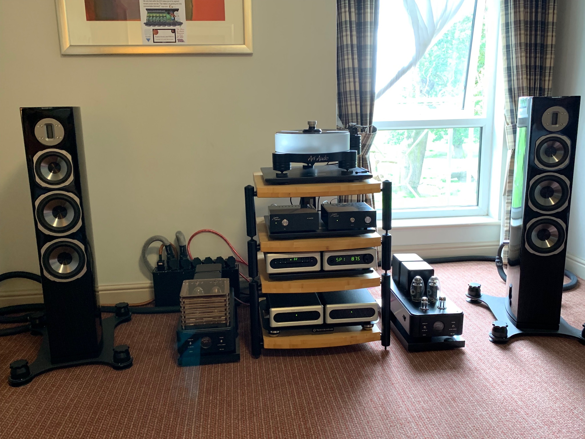 I think you’d have got a large proportion of the sound with much simpler electronics, but Rob was also up until the wee hours trying to sort the room and set things up just so.