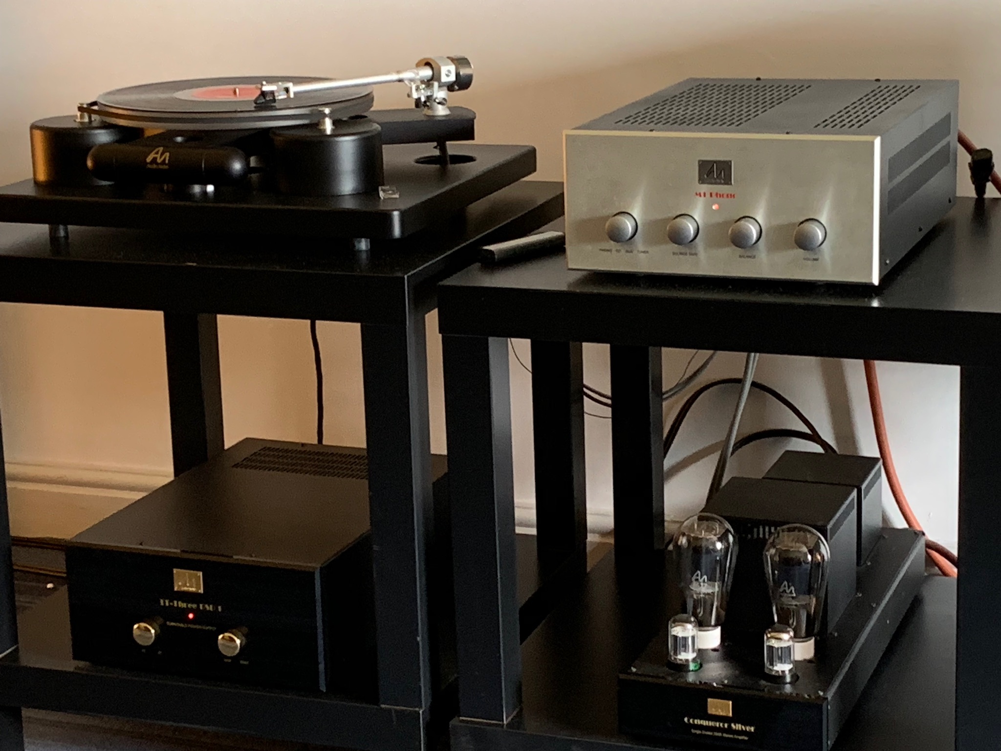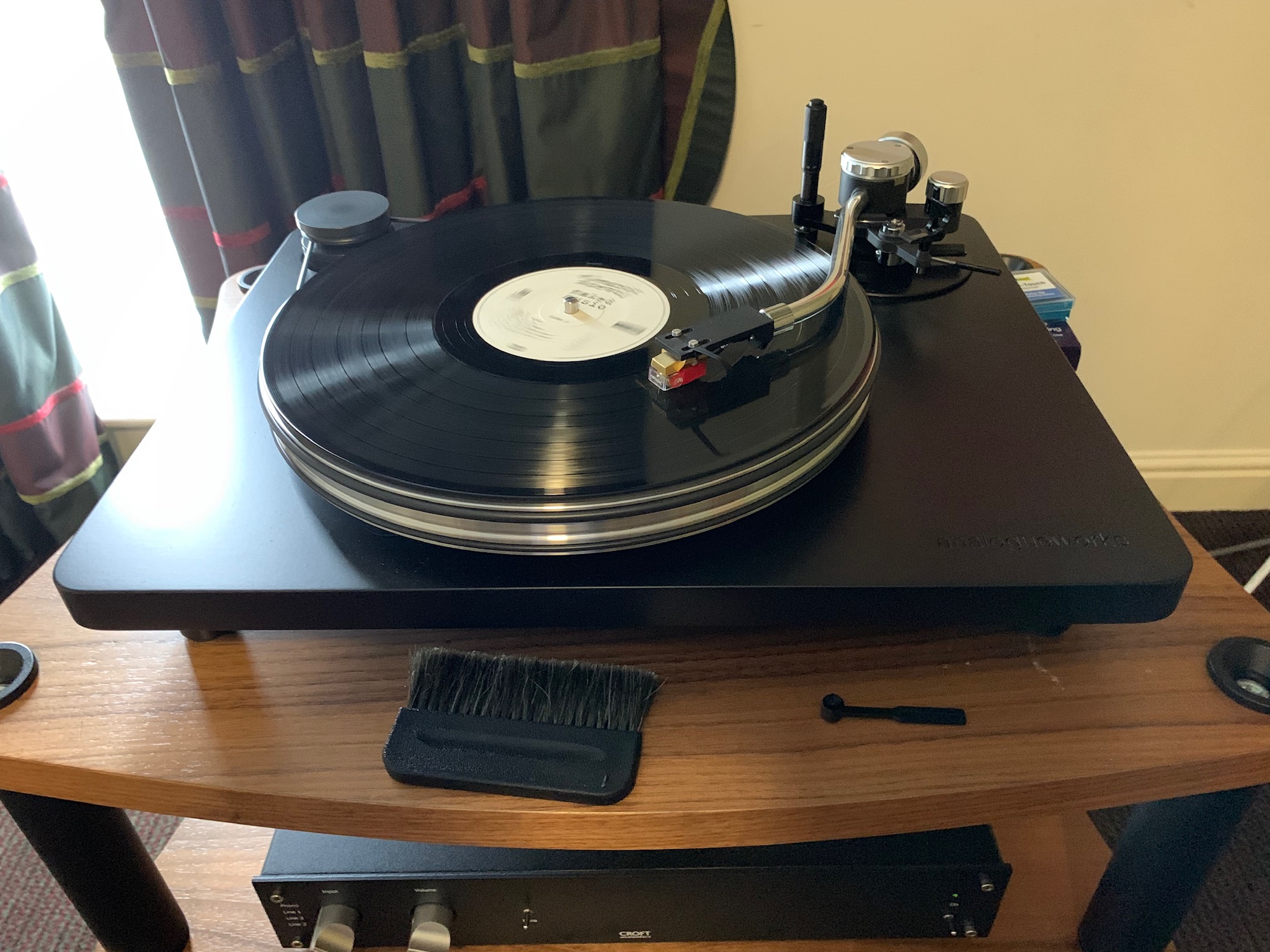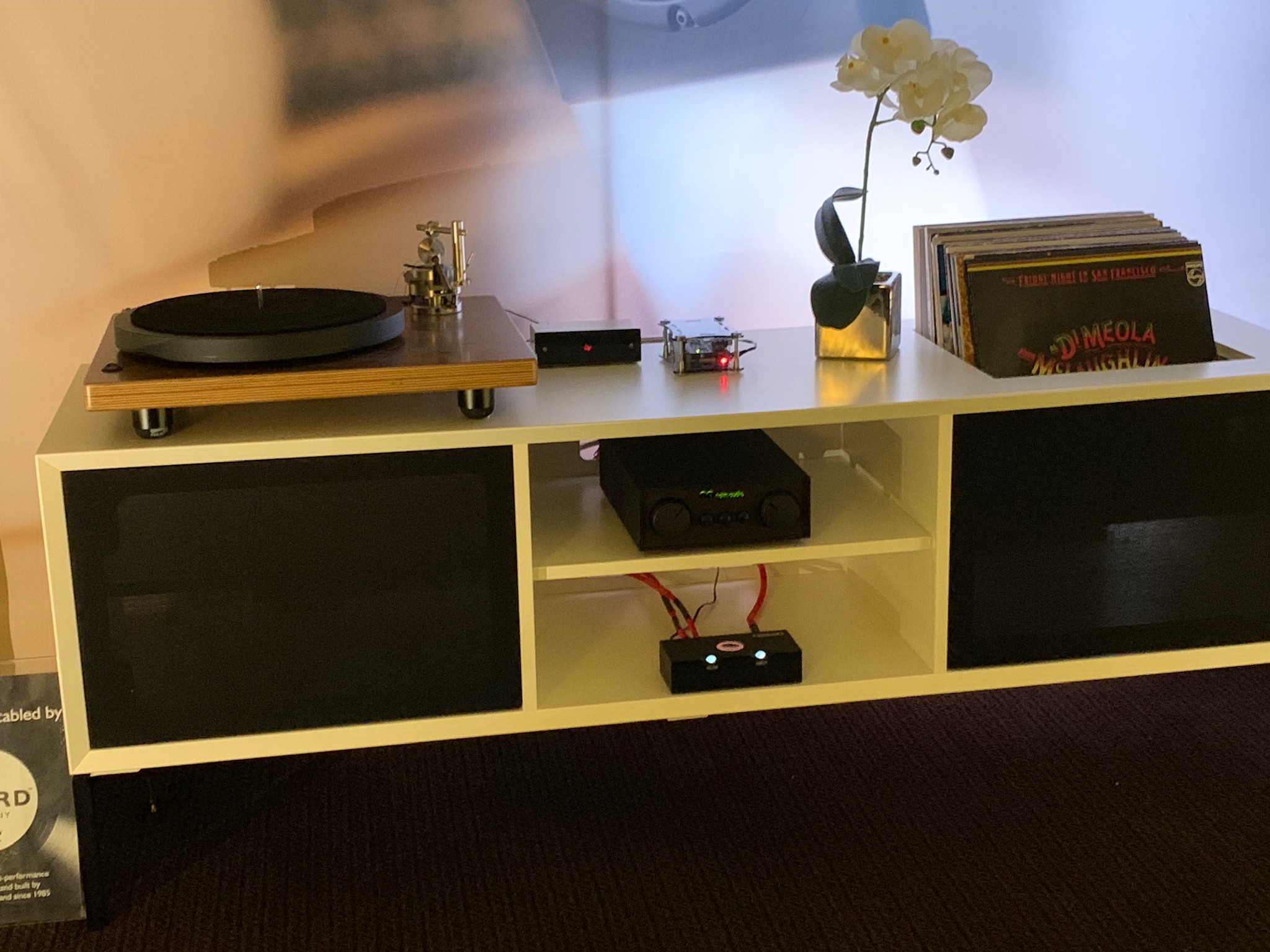 I think you’d have got a large proportion of the sound with much simpler electronics, but Rob was also up until the wee hours trying to sort the room and set things up just so.