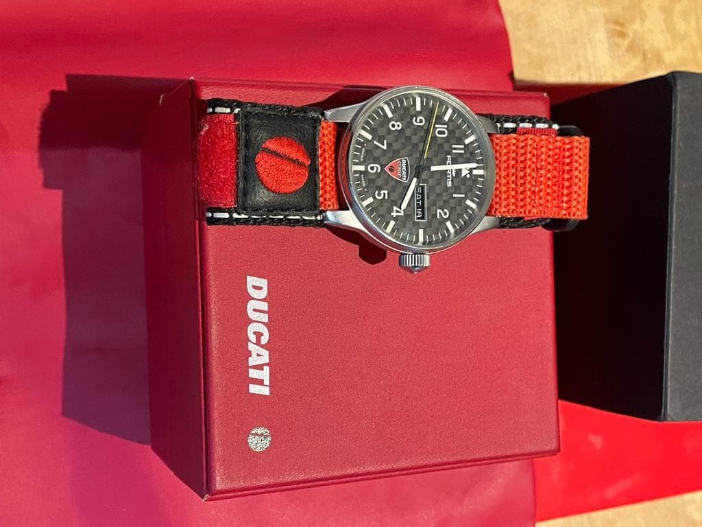 Fortis were the official timing partner to Ducati Corse WSBK Race Team in 1997. As such there were two official Limited Edition Watches released to celebrate this collaboration. This is the less expensive Flieger number 0684 of 2000