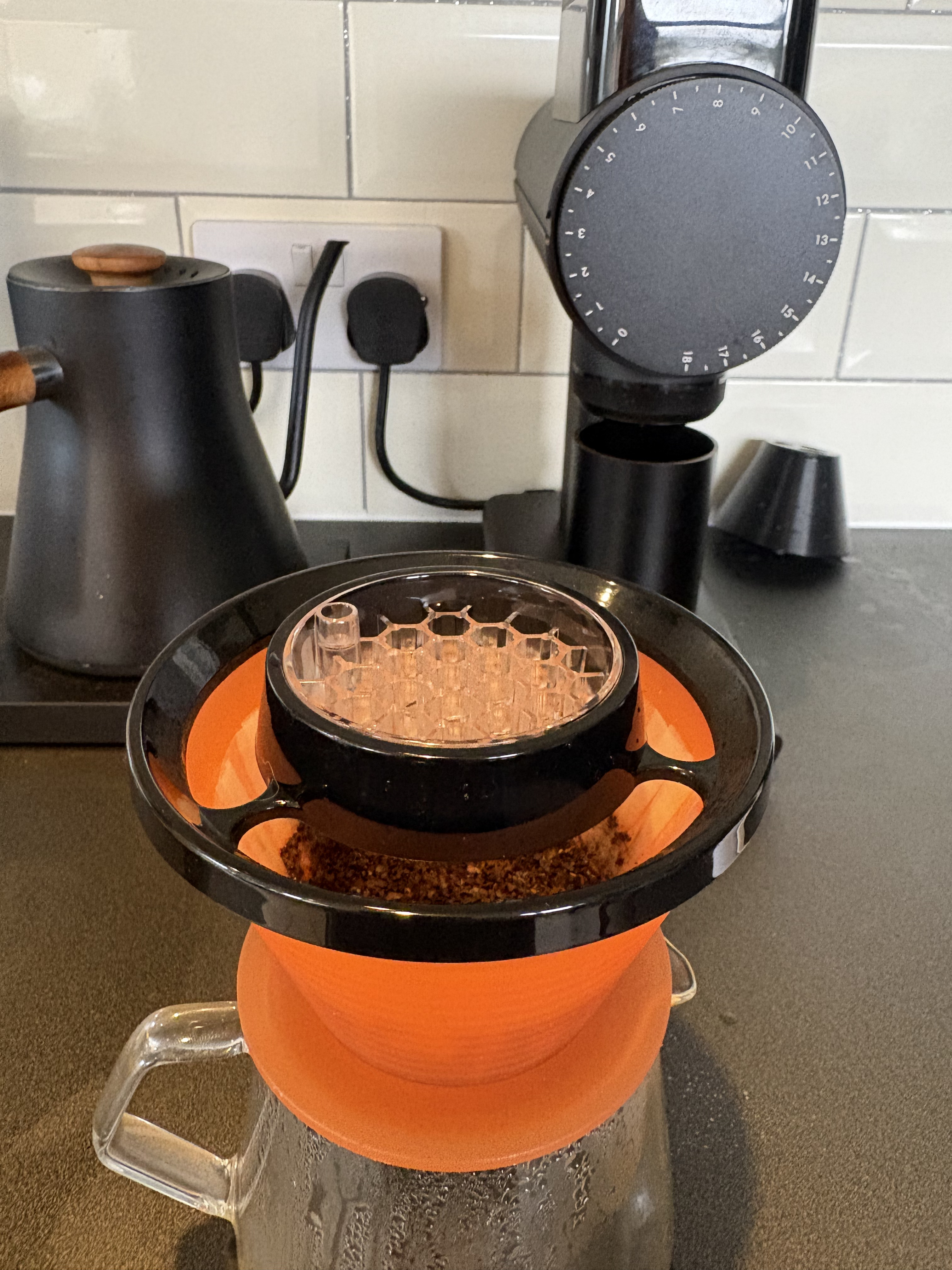 I bloom phase just by pouring with the melodrip on the scales but under the carafe, then put it on top and the final pours are done through it. By having it on the scales already I don’t have to do instant math and can just concentrate on pouring. I expected it would regulate flow more and stop pouring too quickly, but you still need to manage the flow rate yourself with the kettle.