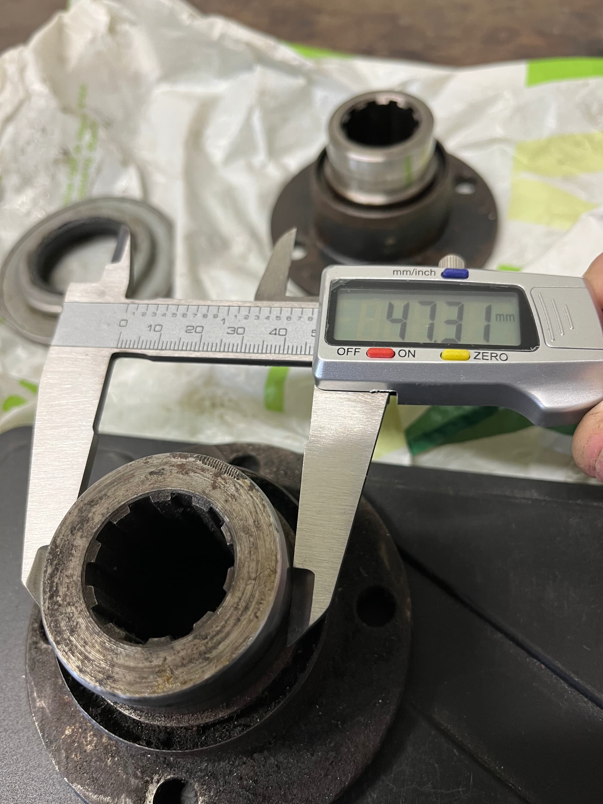 The plan now is to machine a bush that I can press fit onto the original drive flange so it matches the new seal. It’s easy to make a few as it is to make one and I’m sure there are others out there who would like to use that later oil seal. I wouldn’t be surprised if it didn’t add some strength to the splined section too.