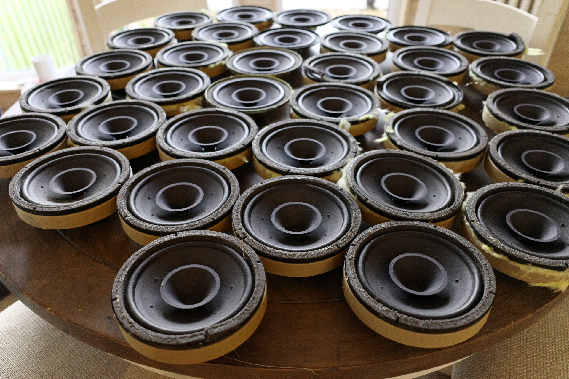 So I have some new arrivals due to be delivered on Monday- I was just expecting a 600x600 test baffle! It’s now all systems go removing the 48 drivers required from original panels and prepping them for refit onto 25mm mdf