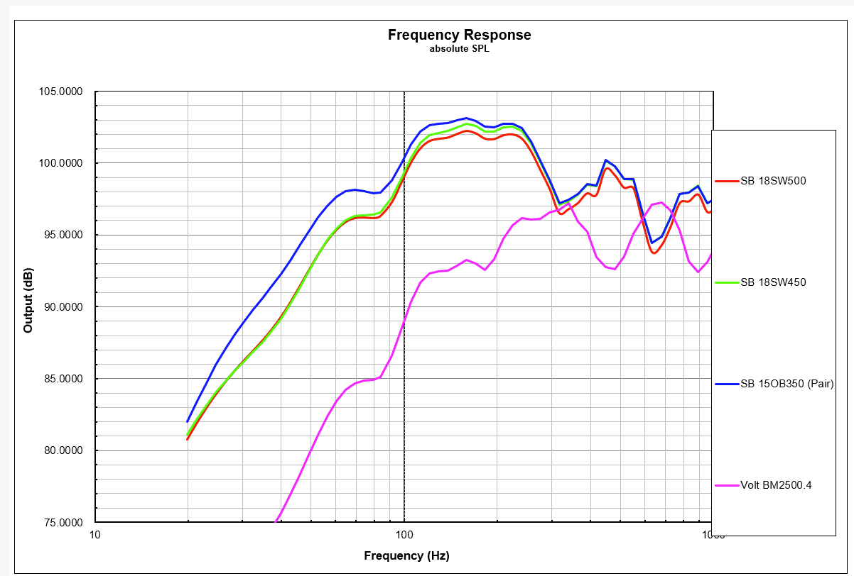 Mid-Bass - 150Hz - 700Hz 10" Volt BM2500.4 Just great punch in the midbass and smooth in the lower midrange.