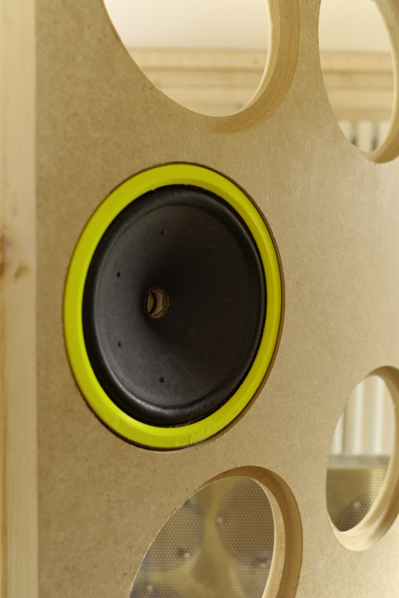 Now the baffles are here (the guy I used for the CNCing made an excellent job of them) I have started on working out exactly how I was going to mount the drivers - Because there was a round over on the rear cut thro the nut position I decided to 3d print a nut support clip - I’m tweaking the design of the clip as I go. Sixty hours printing for the clips and one twenty hours plus for the embellisher rings. I also knocked up a drill jig for the holes - Seems to all work OK.