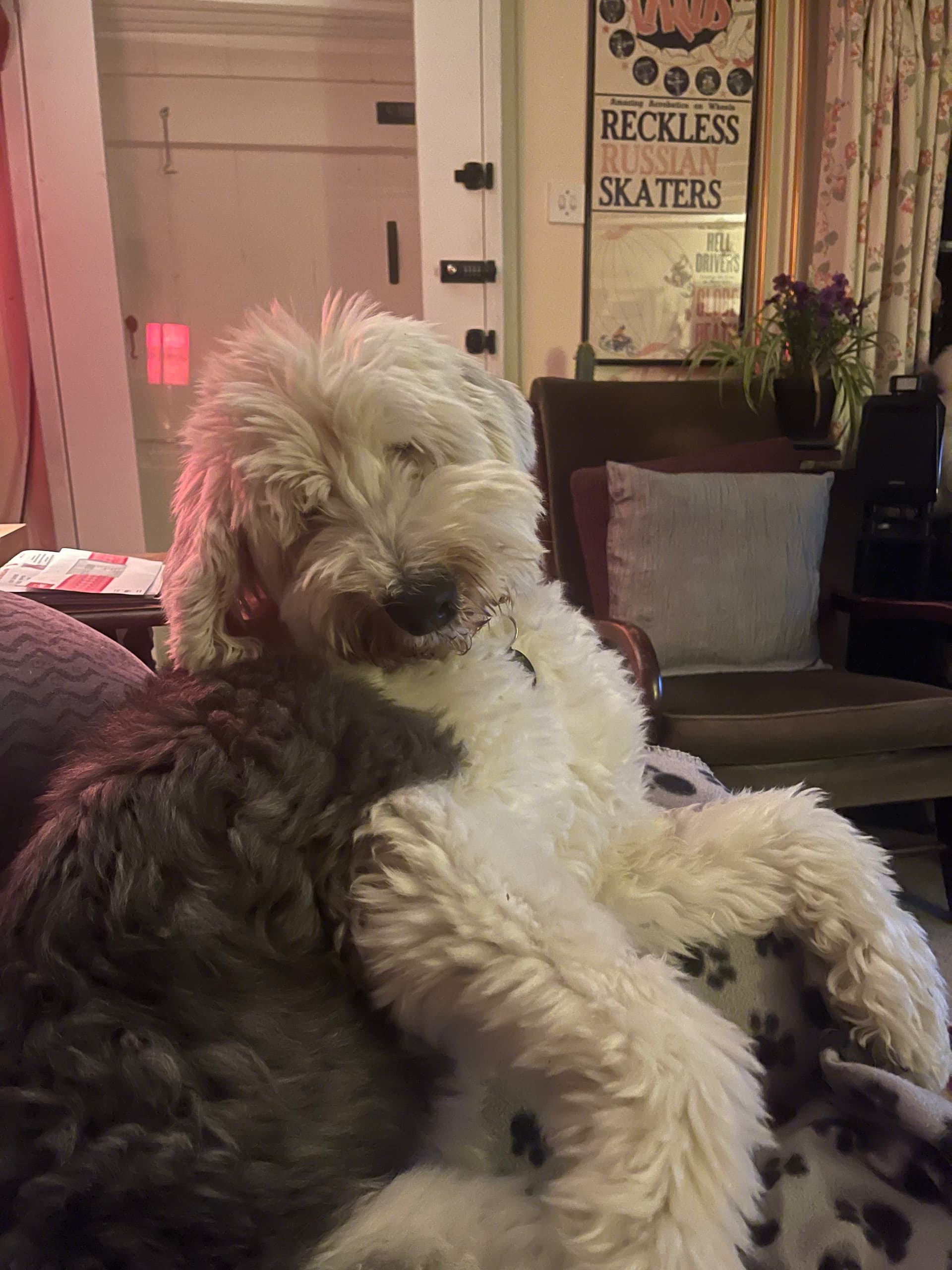This is Milly, my beloved old english sheepdog. Completely blind, arthritis and neurological issues the result of doggy strokes. My wife died last year (28 years together) and she is my life line as I am not in a good place, she is fantastic other than slowly destroying my stuff with head butting. Dogs are so good.
