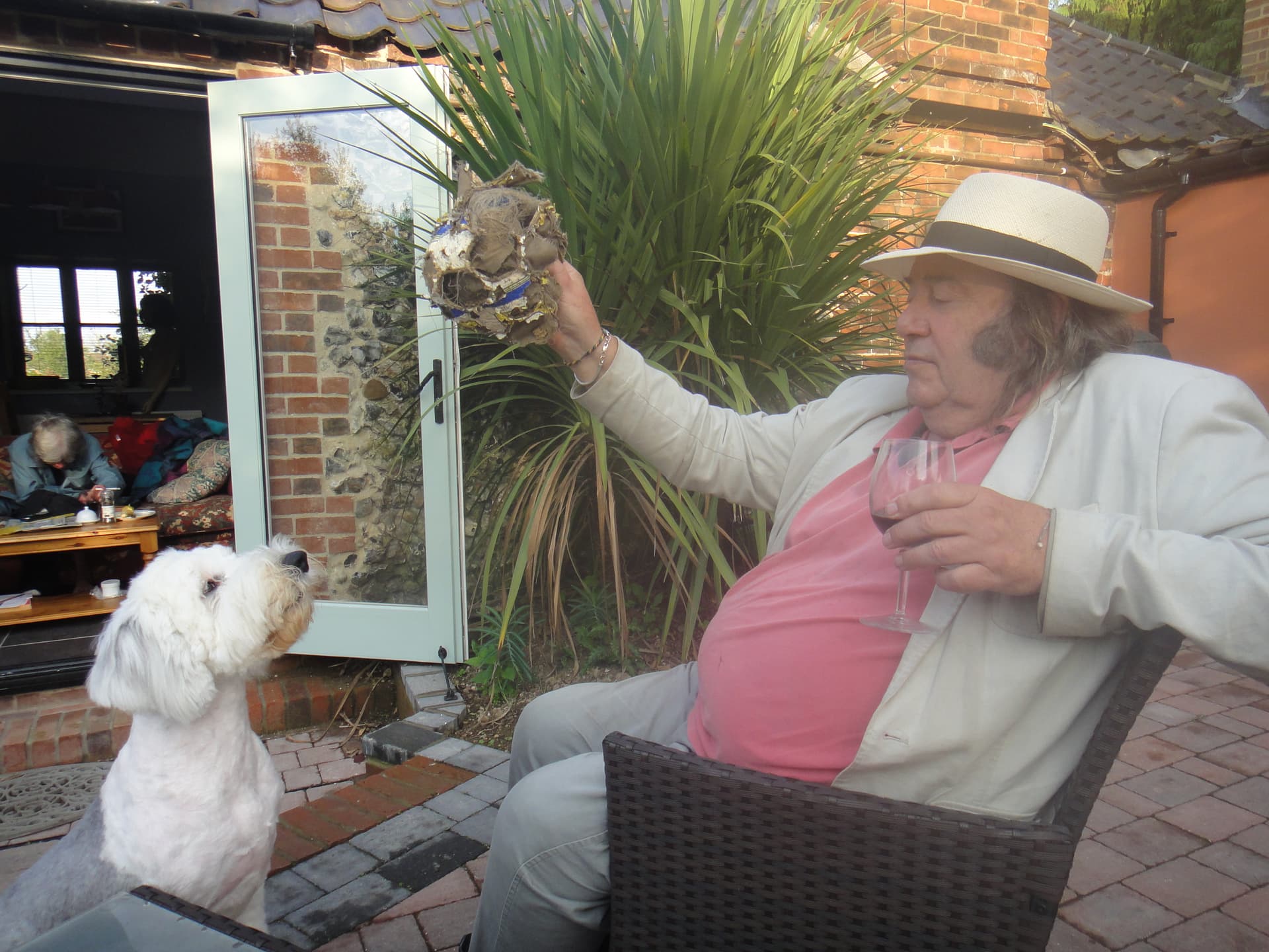 Hereâs Milly with Chris Reaâs keyboard player Max Middleton who arranged and played on âDriving Home for xmasâ. Max is teaching Milly the song with the aid of a ball and glass of wine. Great days.