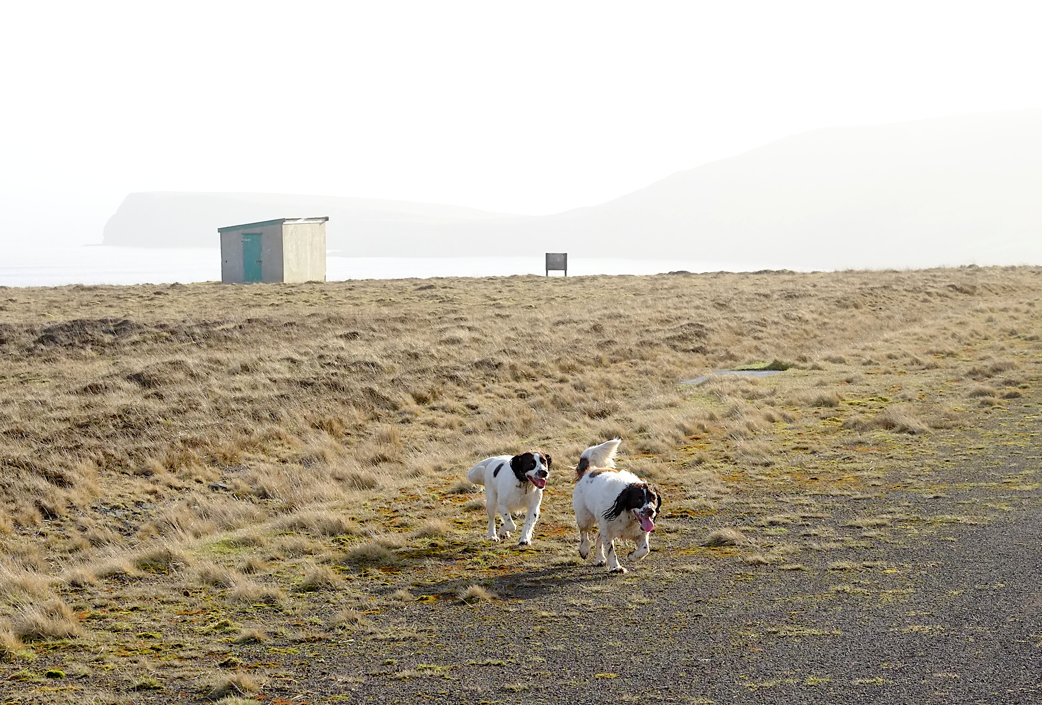 I’ve been taking the girls up to Fetlar International Airstrip lately. Half mile long strip, starting to get too many grassy mounds for a smooth landing, but surrounded by heather moorland (with associated muddy pools) and complete freedom for them to go mad.