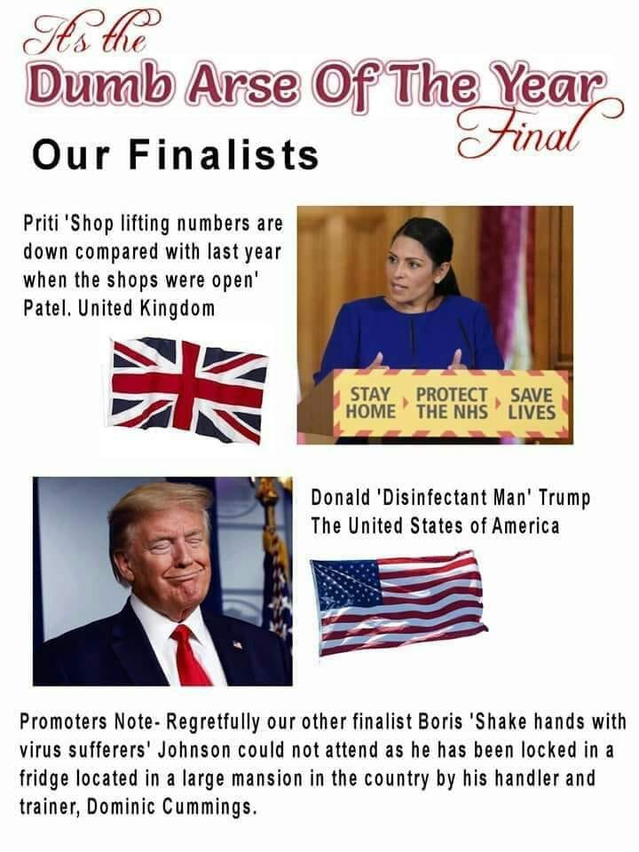 Boris was too focused on winning this year’s Darwin award & therefore missed out as a Dumb Arse contender.