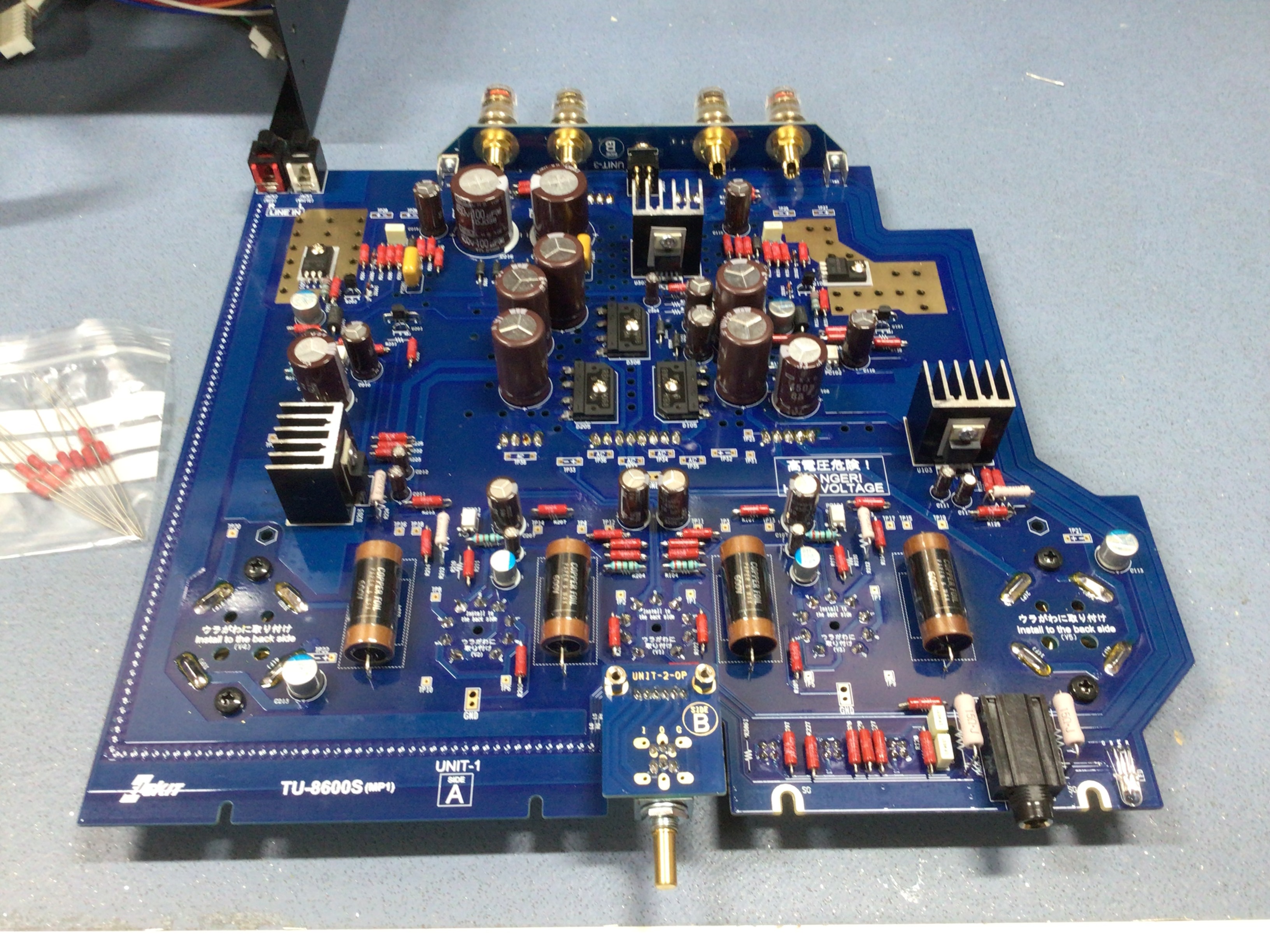The build was straightforward but a bit arduous with so many components. Also the upgraded resistors were somewhat larger than the originals and required some care to avoid any shorting. Build time was 8 hours over a period of 4 days. Everything just falls into place, I did not have to drill, file or fettle. Just perfect Japanese engineering.