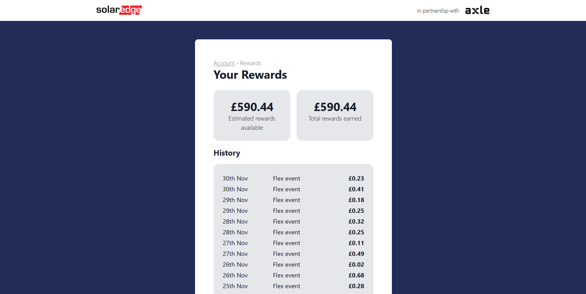 Our SolarEdge batteries have a deal with Axle Energy, earnings below so far in the last year since we signed up!
