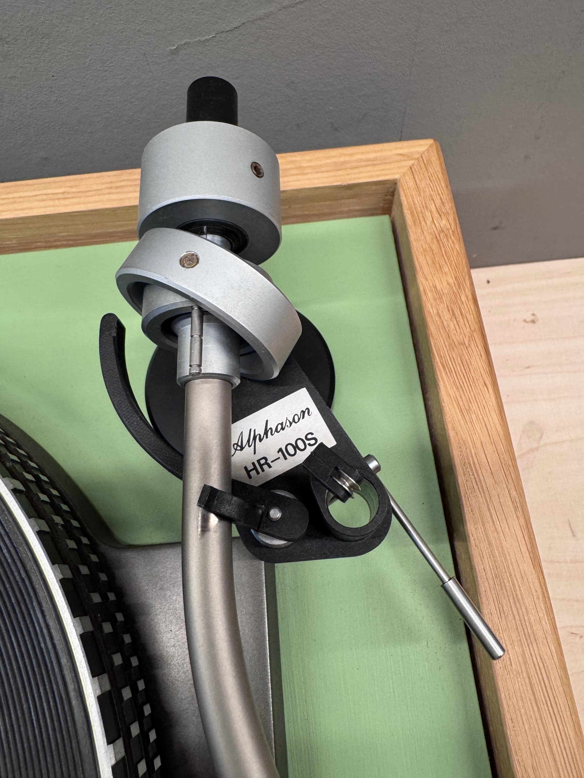 Alphason hr100-s. Saved from being ruined sat on an early lp12. Probably the reason I’ve been putting off selling this is the arm and the idea of putting it on my Garrard 301 or a finding a technics sp-10 to mount it on. On last use removing the cartridge one of the tags broke. So needs a cartridge tag and string to hang counterweight.