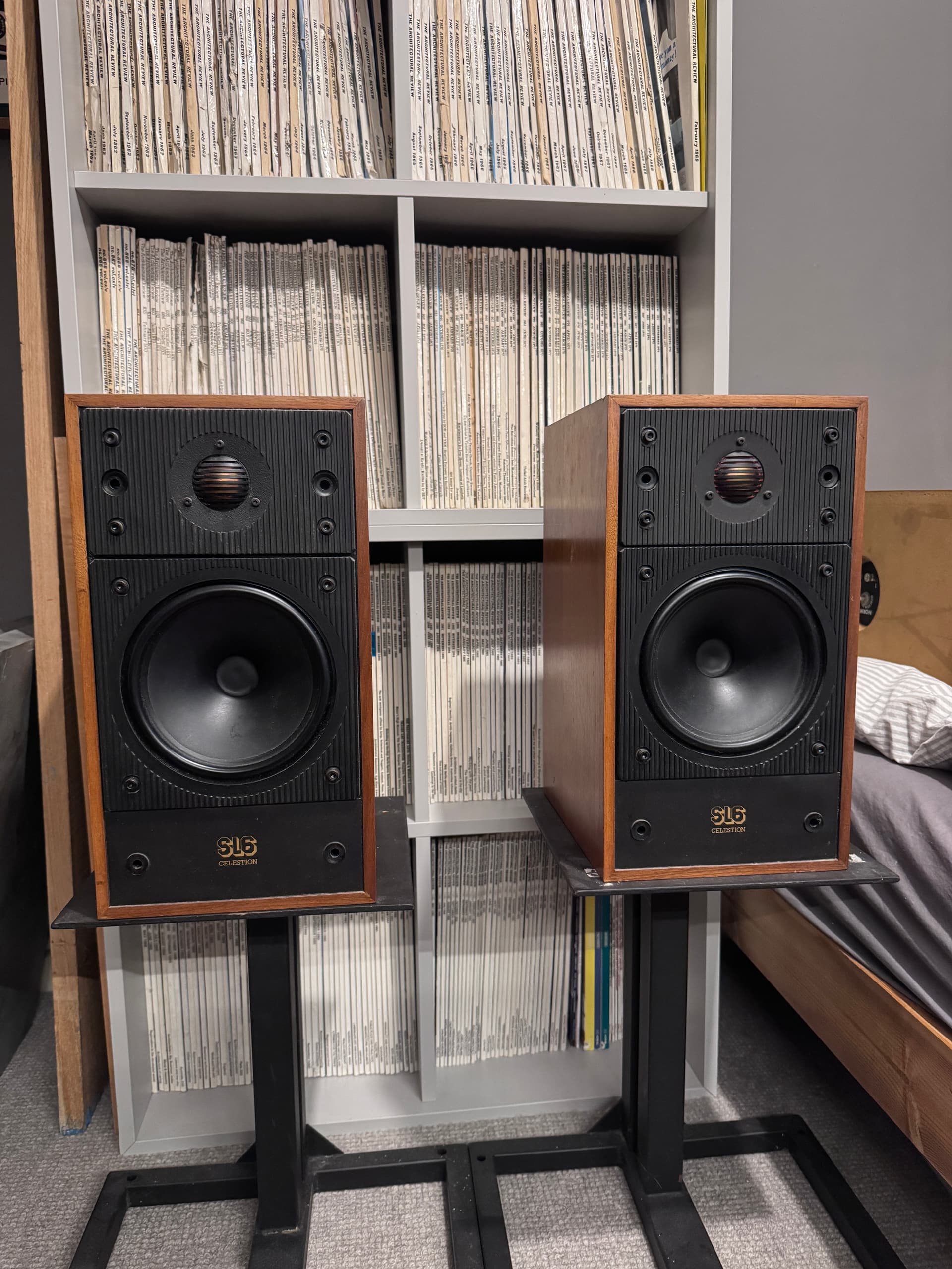 Celestion sl6. all good, no splits on the rubber surrounds. Have the grilles, one has a small hole on the top corner about 5mm diameter. Have some marks to the venner. £120