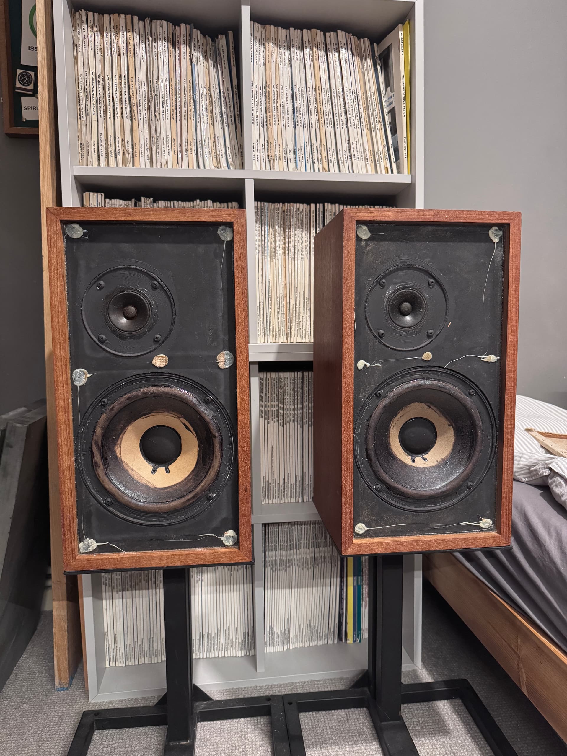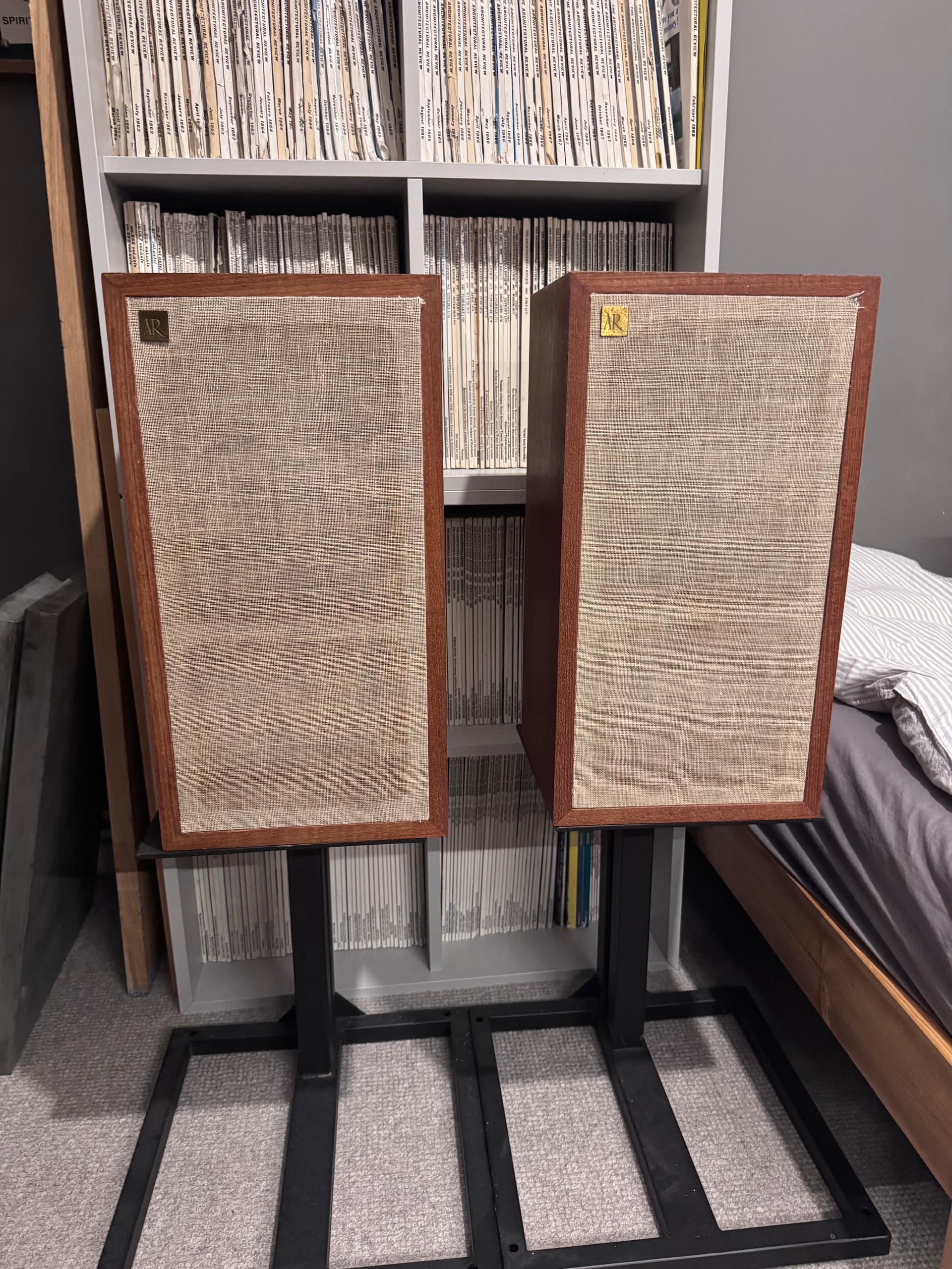 Acoustic Research ar4x. Alnico magnets and cloth surrounds. The treble adjustment on the rear is very temperamental. They all do that sir, need the rheostats completely stripping and cleaning or replacing. £150