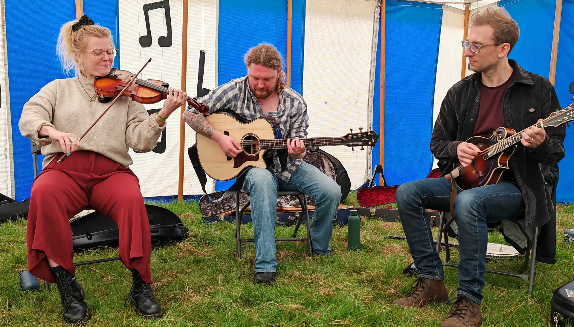 This is my favourite sort of session, unamplified just sitting in a round. The Shackleton Trio.