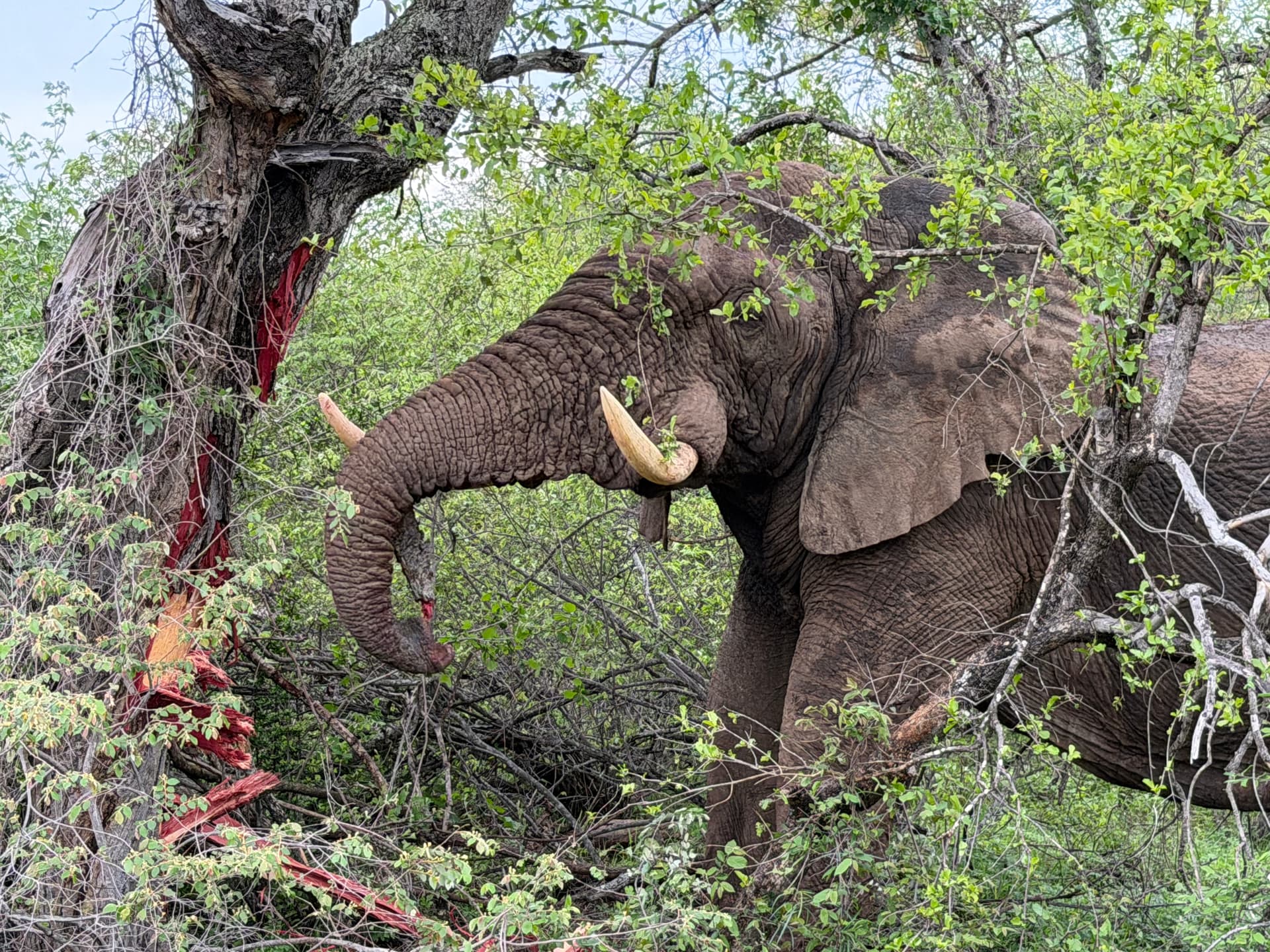 The elephants were incredible. Destroying trees and ripping bark off as they rolled through a dense bush area. The main bull was beyond massive.