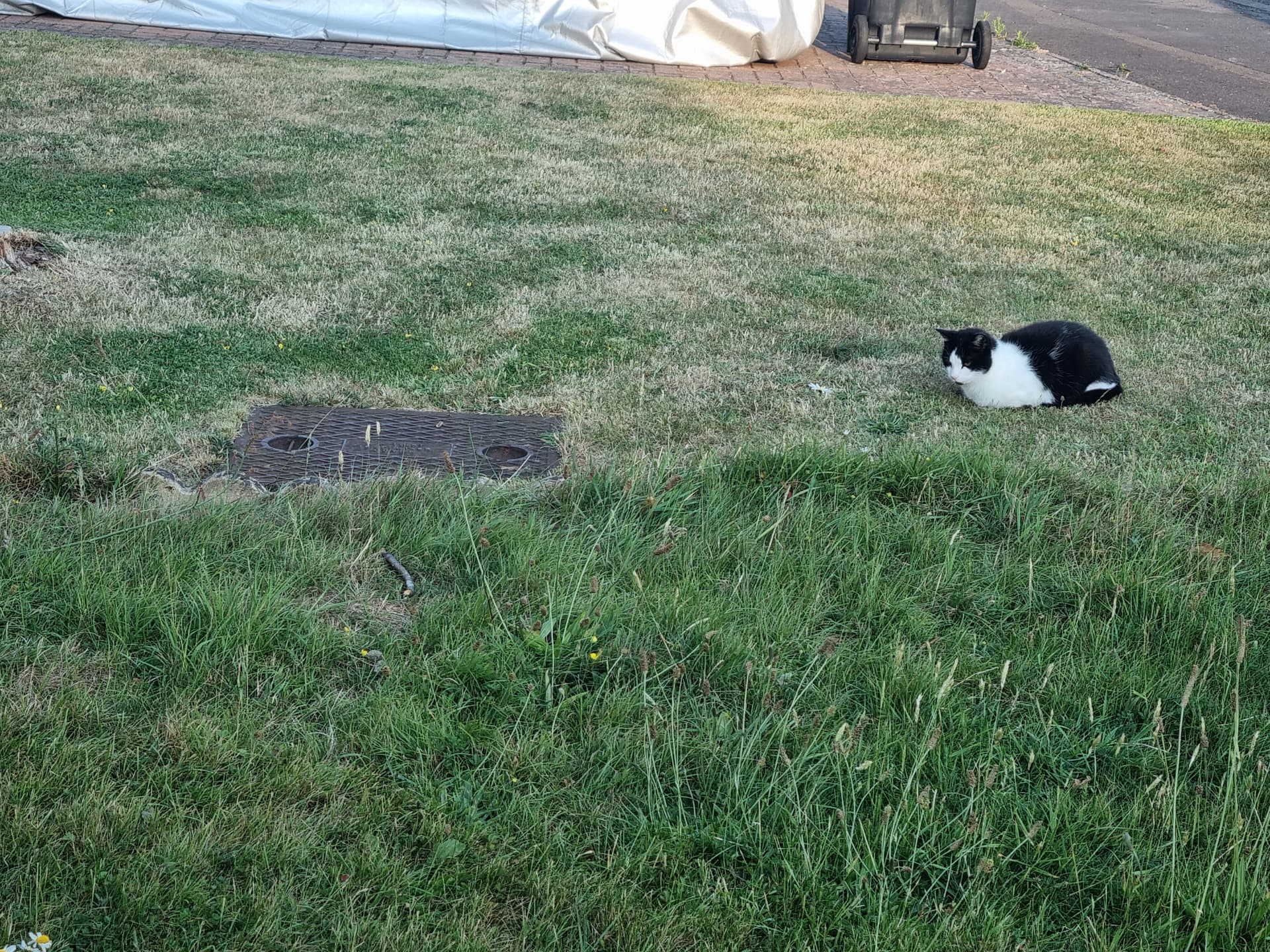 He has however spent months sitting and staring at this manhole cover on the garden the other side of us.
