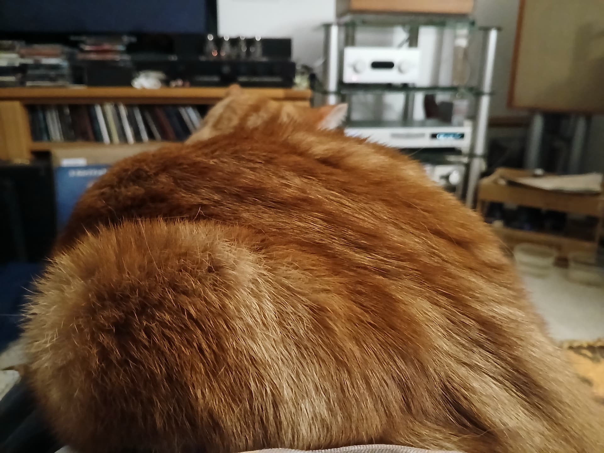 He’s next door, however Ginger Mk2 has paid me a visit. I get a gentle tap on the shoulder before he assumes this position. His main home knows he pays us the occasional visit.