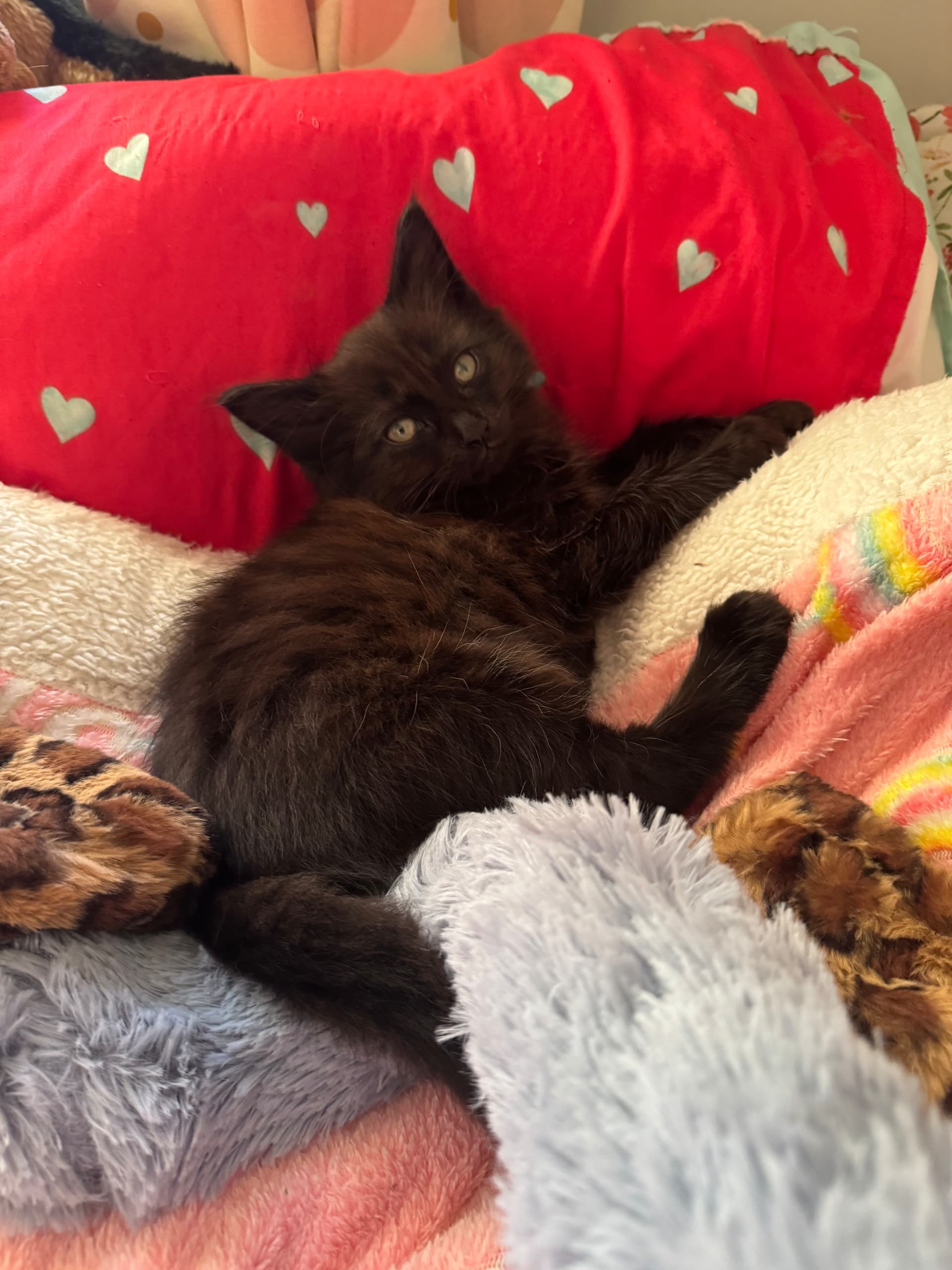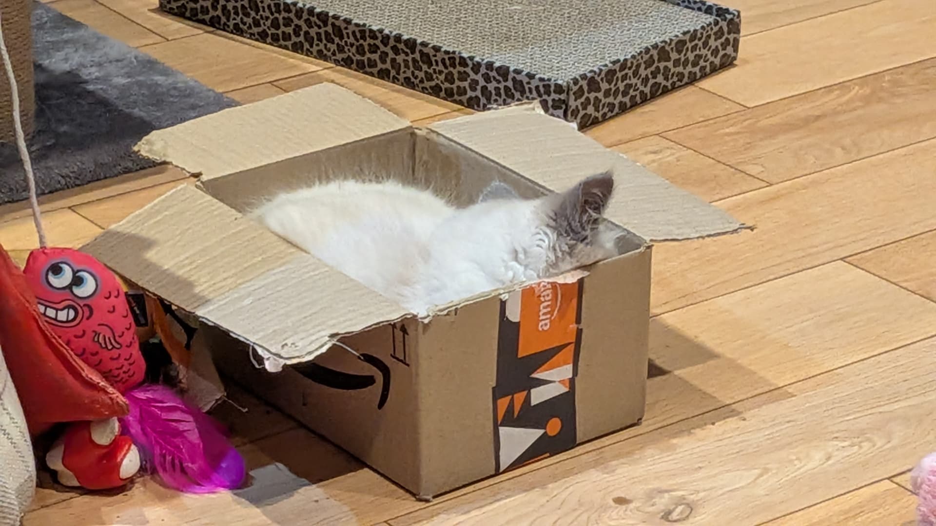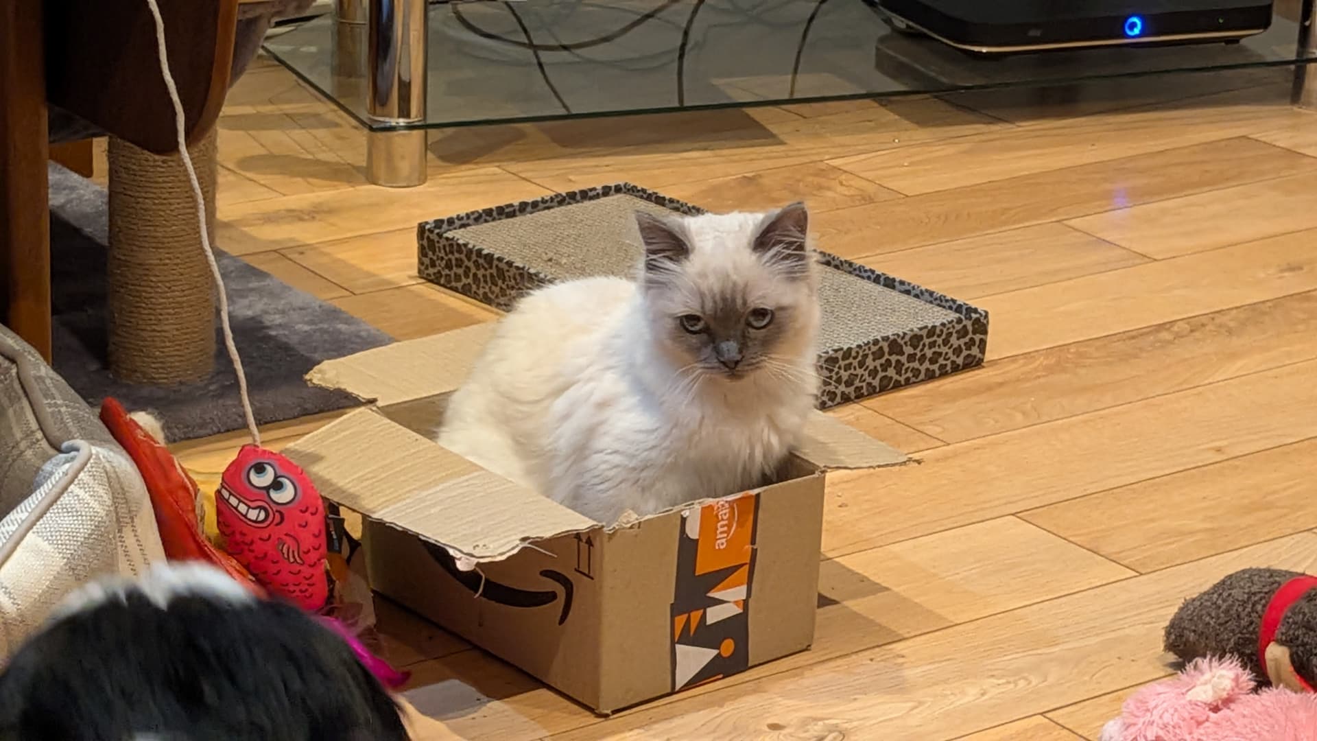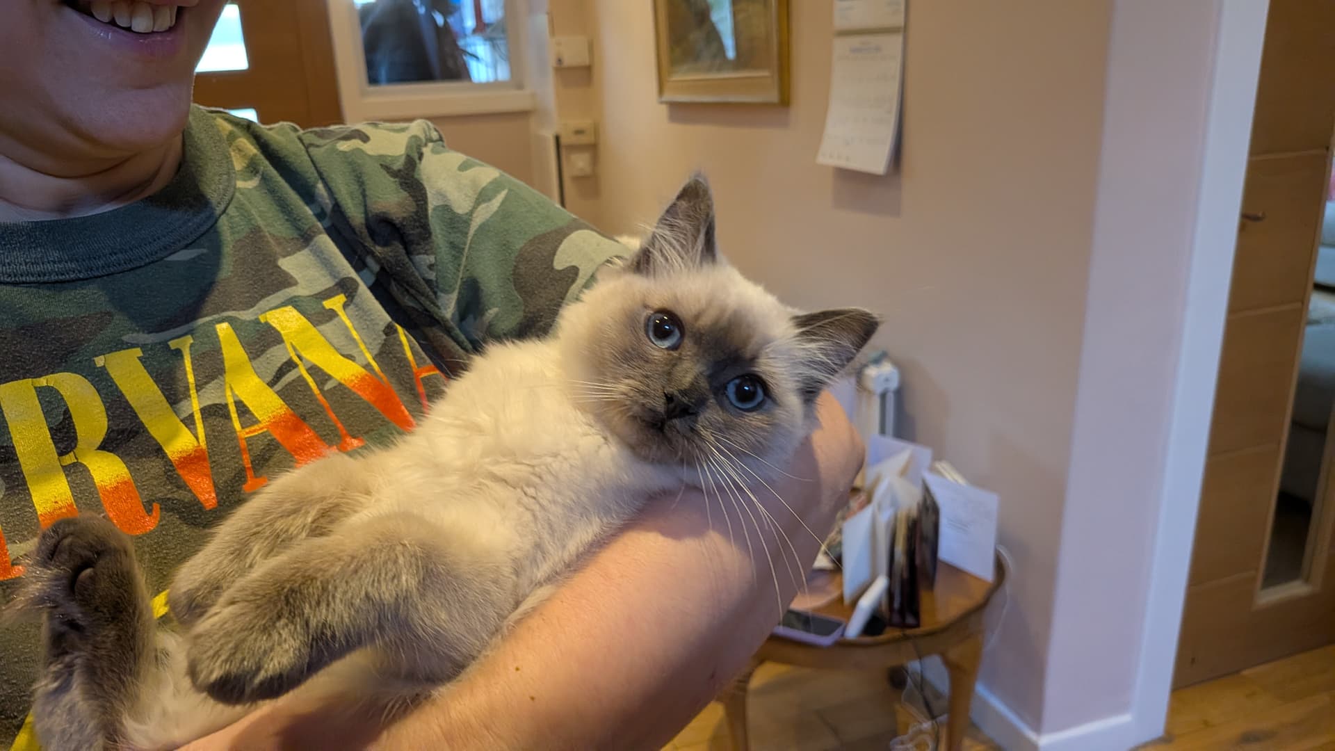 This is my cousin’s new ragdoll kitten, Buffy. She’s a gallous wee thing. Once she realised that Buddy was a gentle soul she started boxing his ears and chewing his tail.