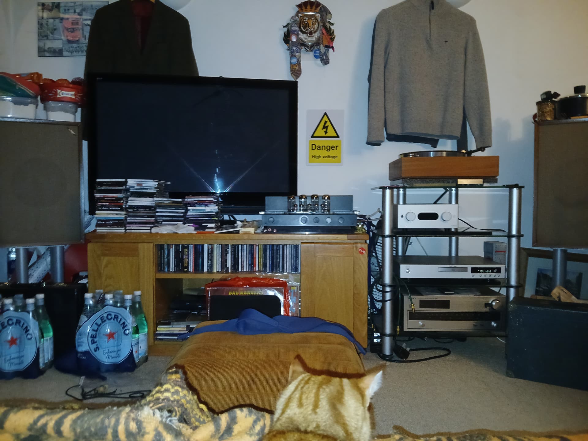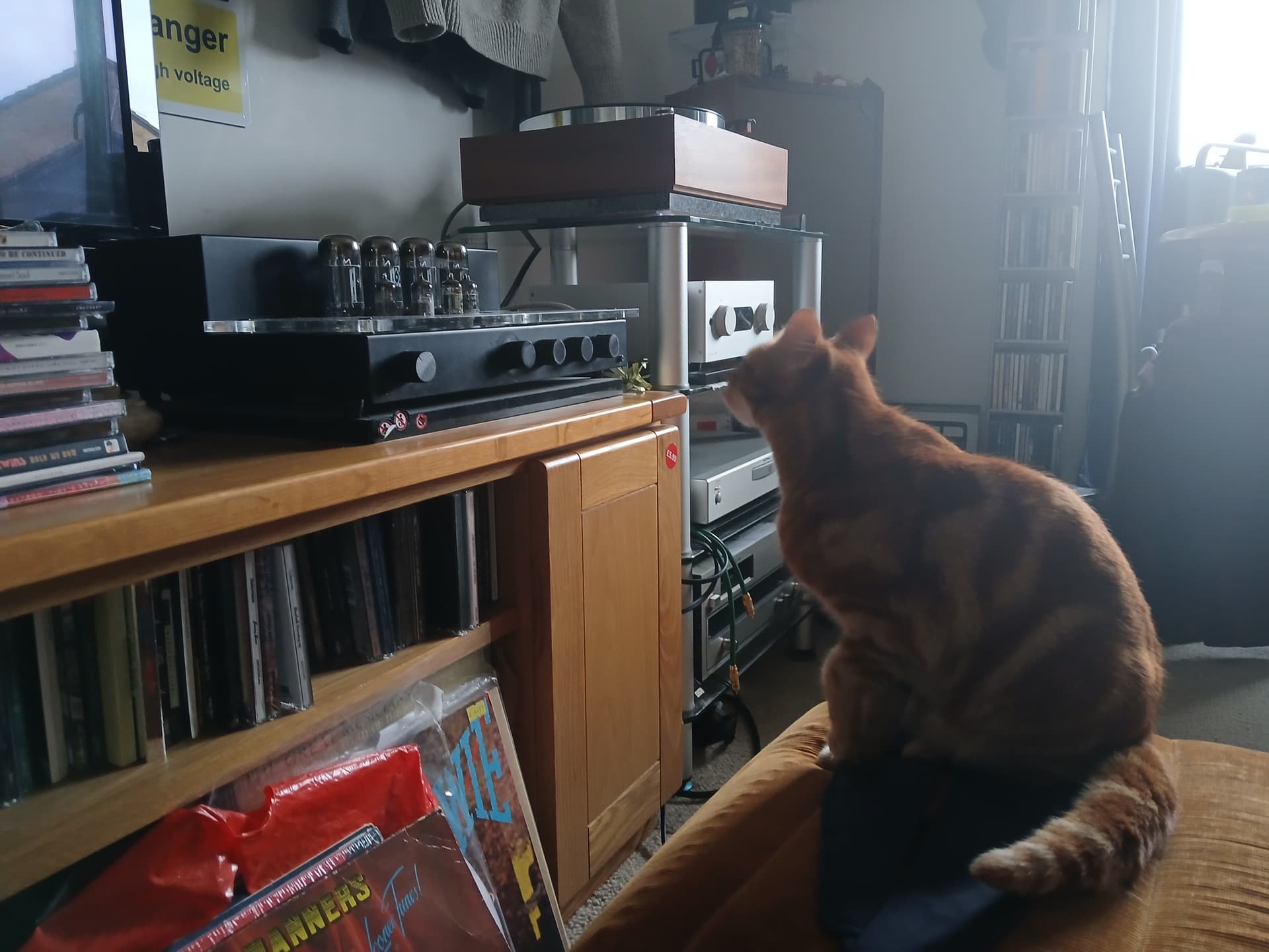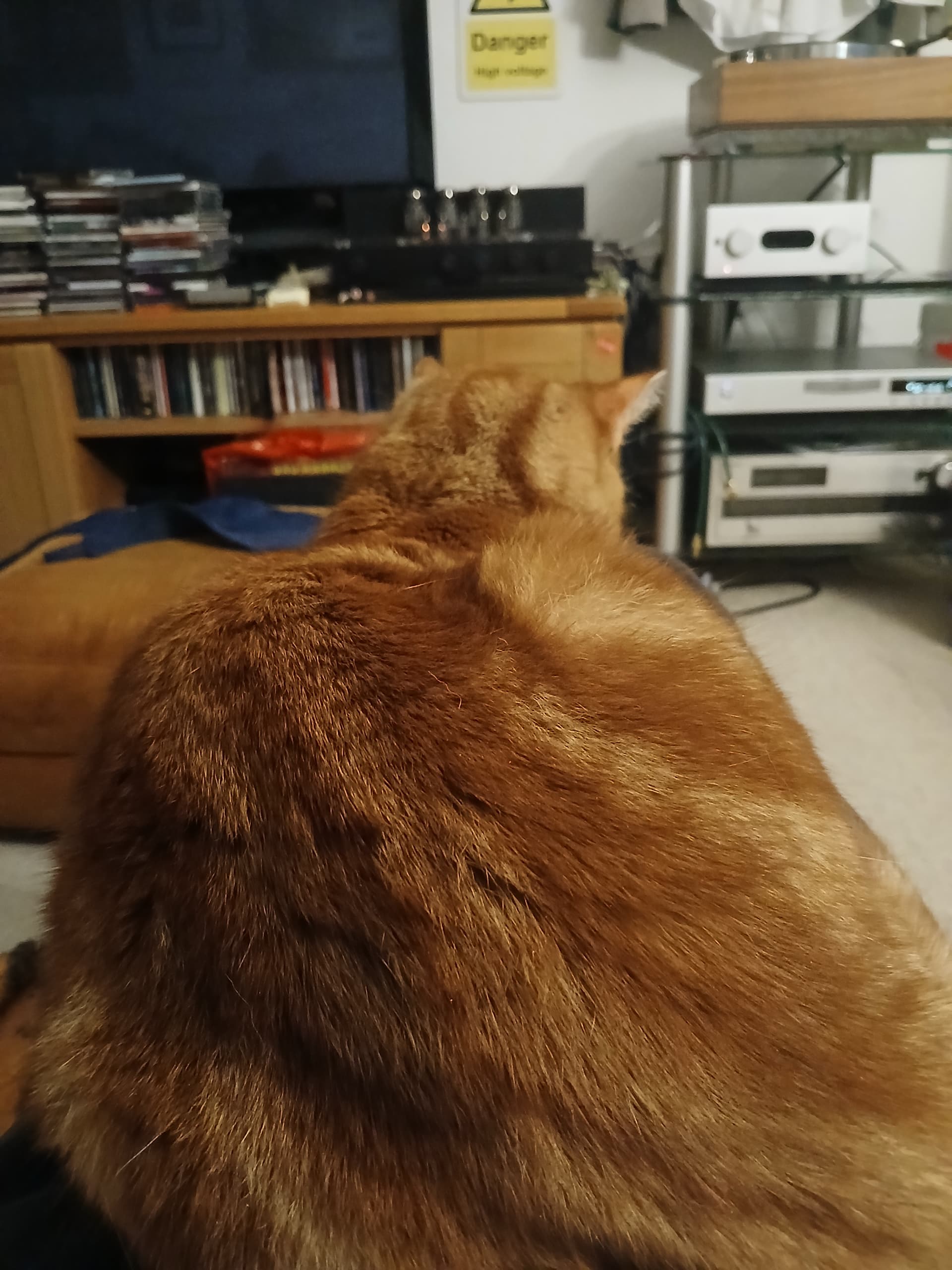 No prizes for guessing what he’s listening to… Lord Boots is out of shot- definitely listening though…