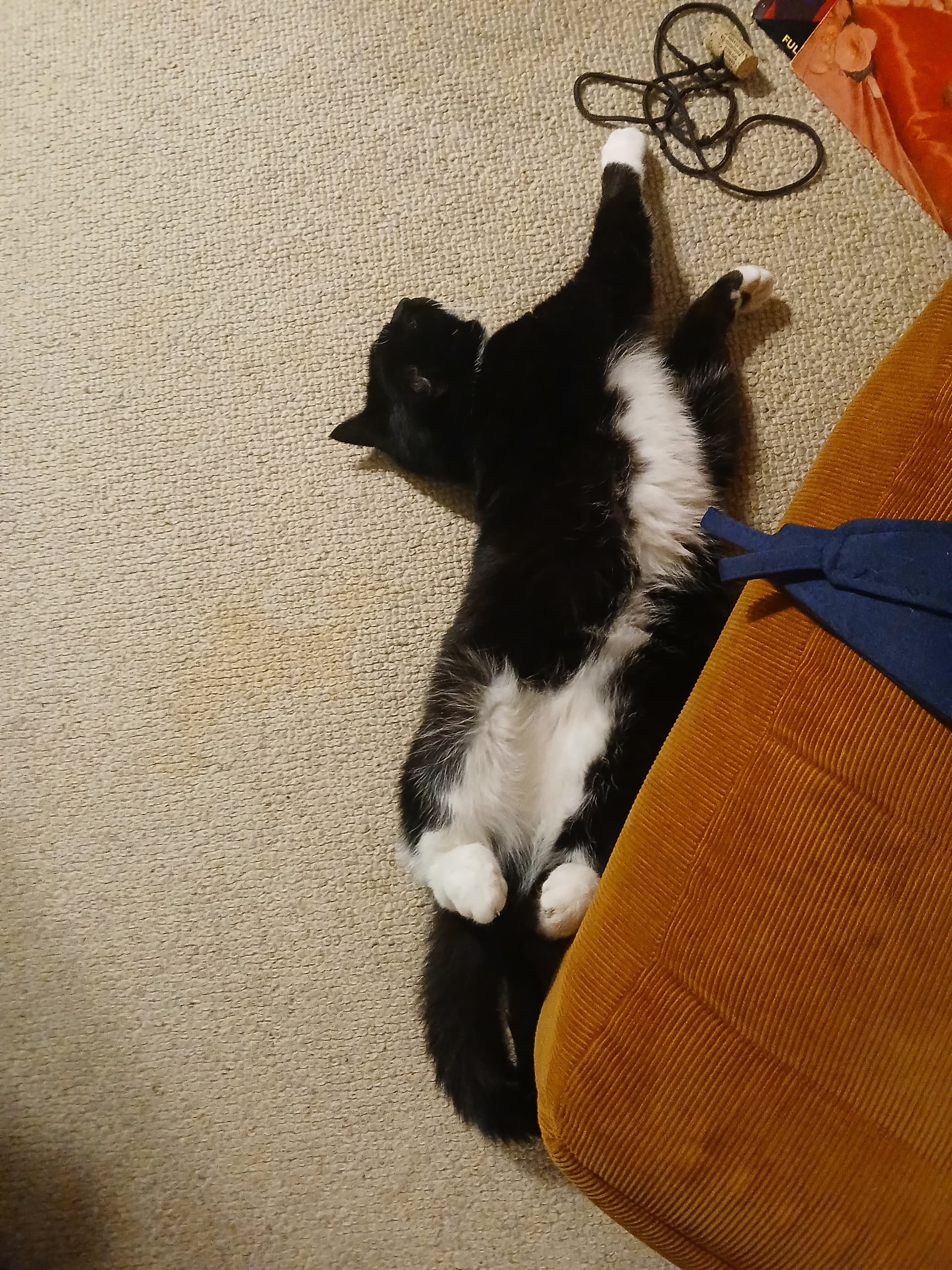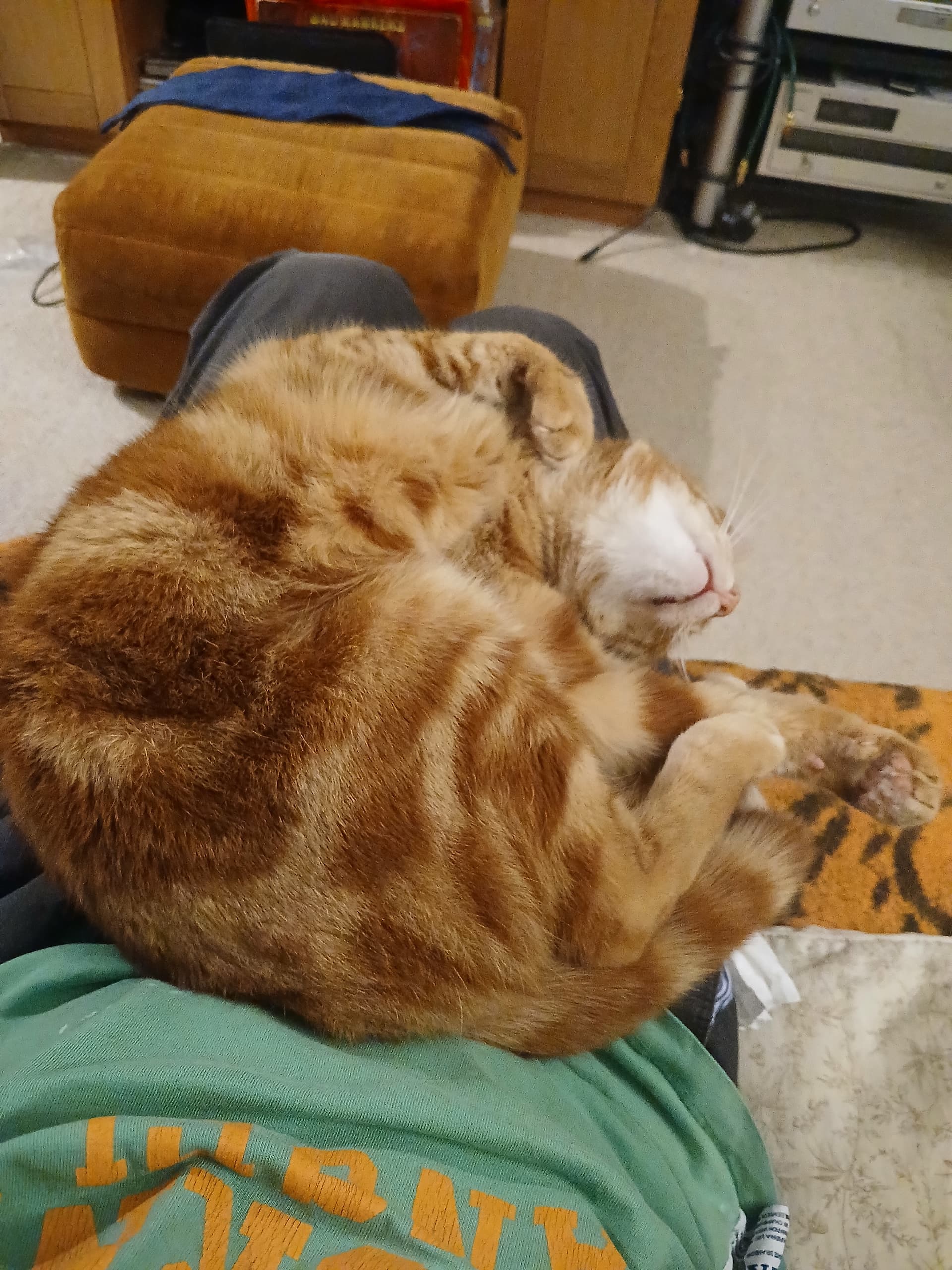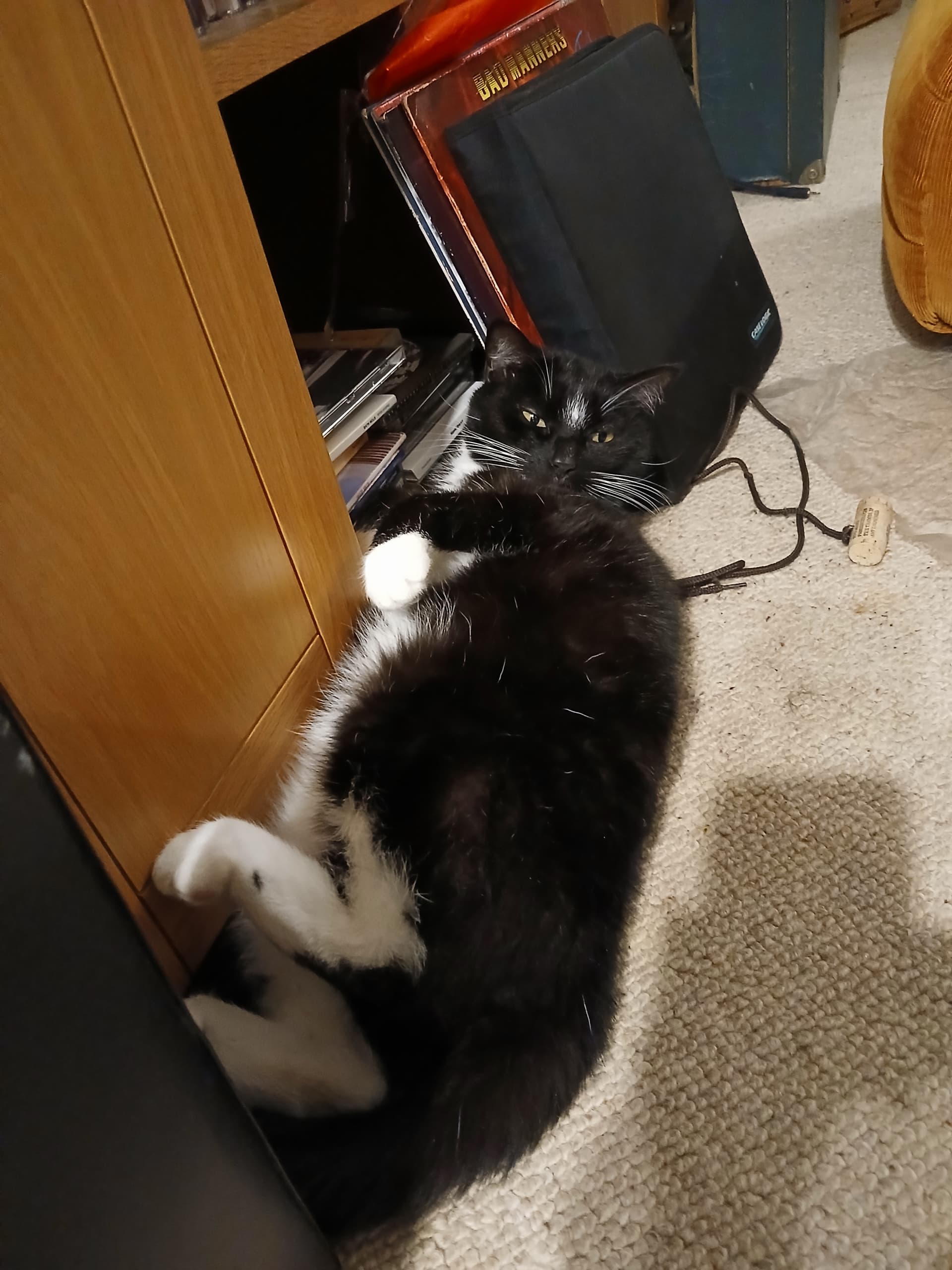 No prizes for guessing what he’s listening to… Lord Boots is out of shot- definitely listening though…
