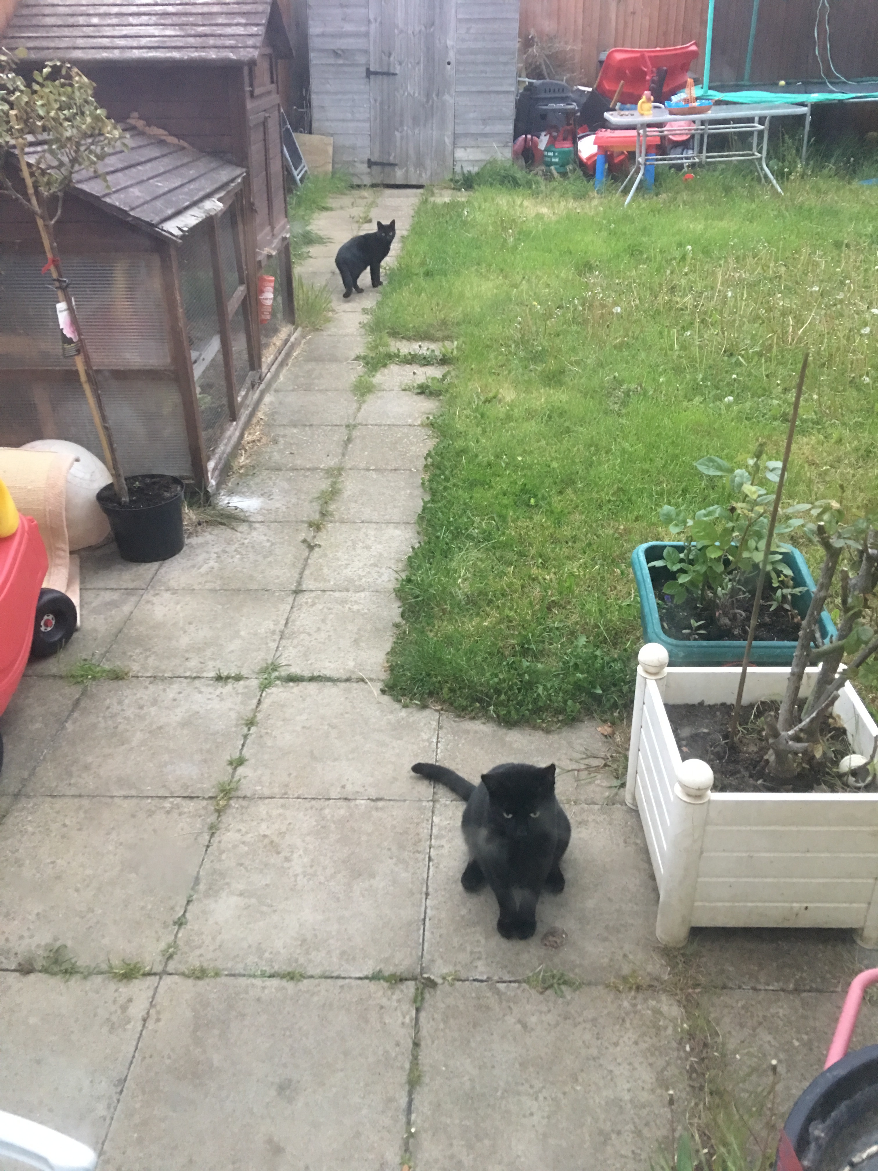They are indoor cats, and we had kept the defunct cat flap locked - but someone had broken it and enticed Marley outside with some food (the remains were on our back door step).