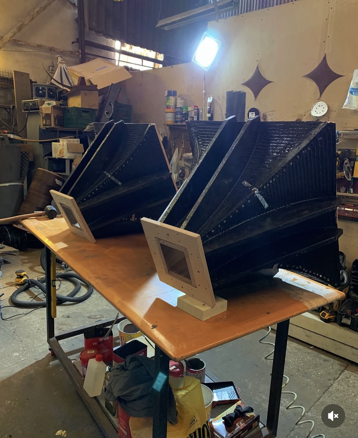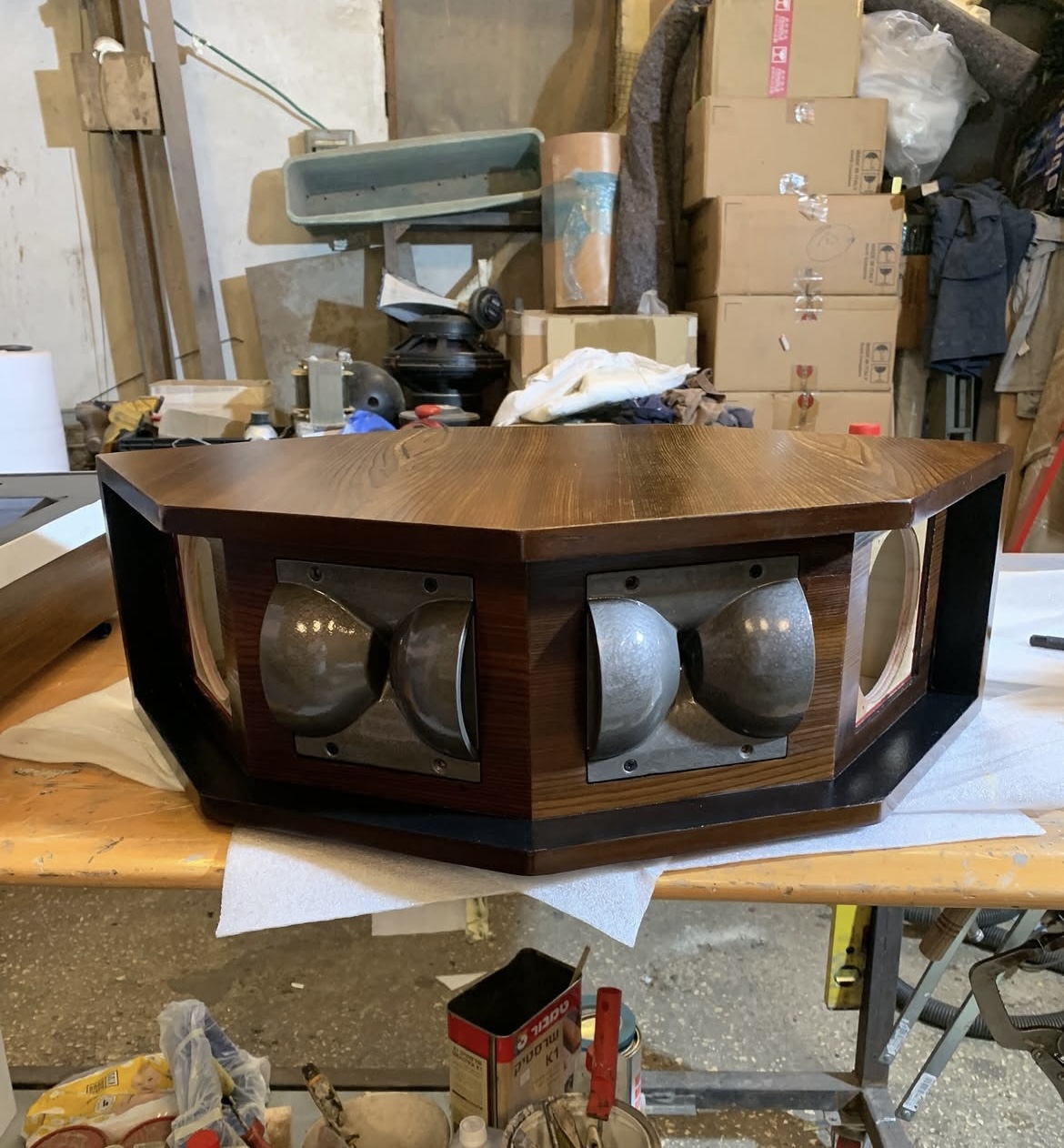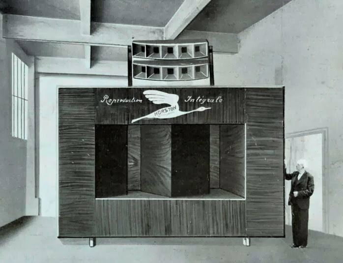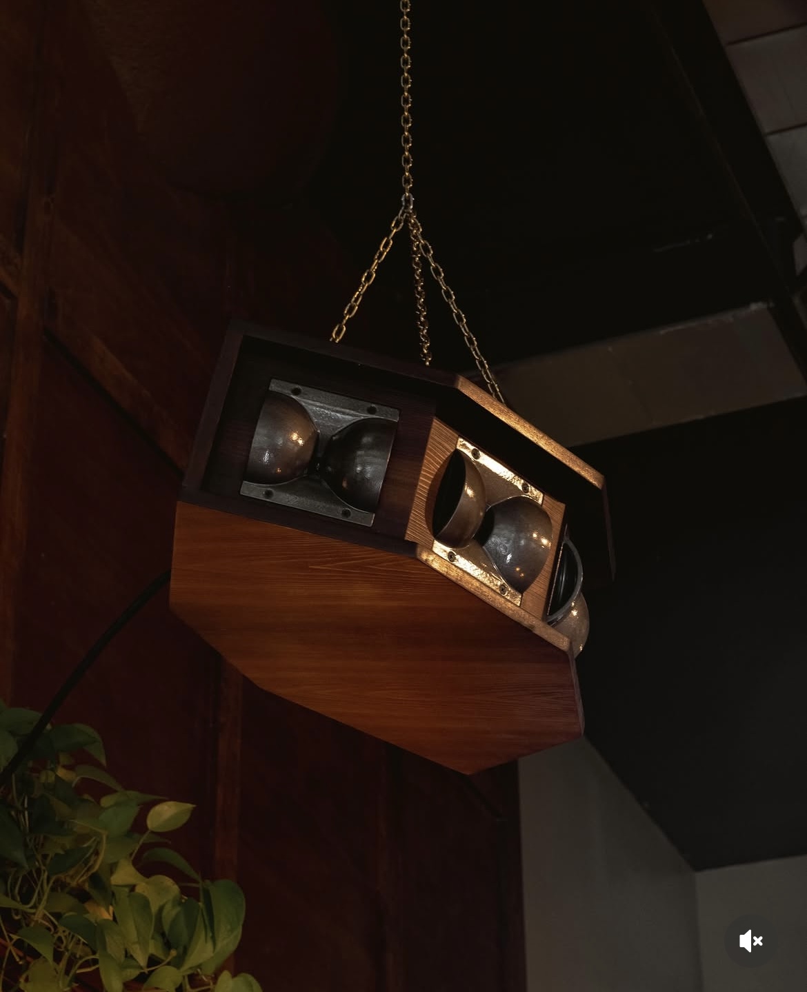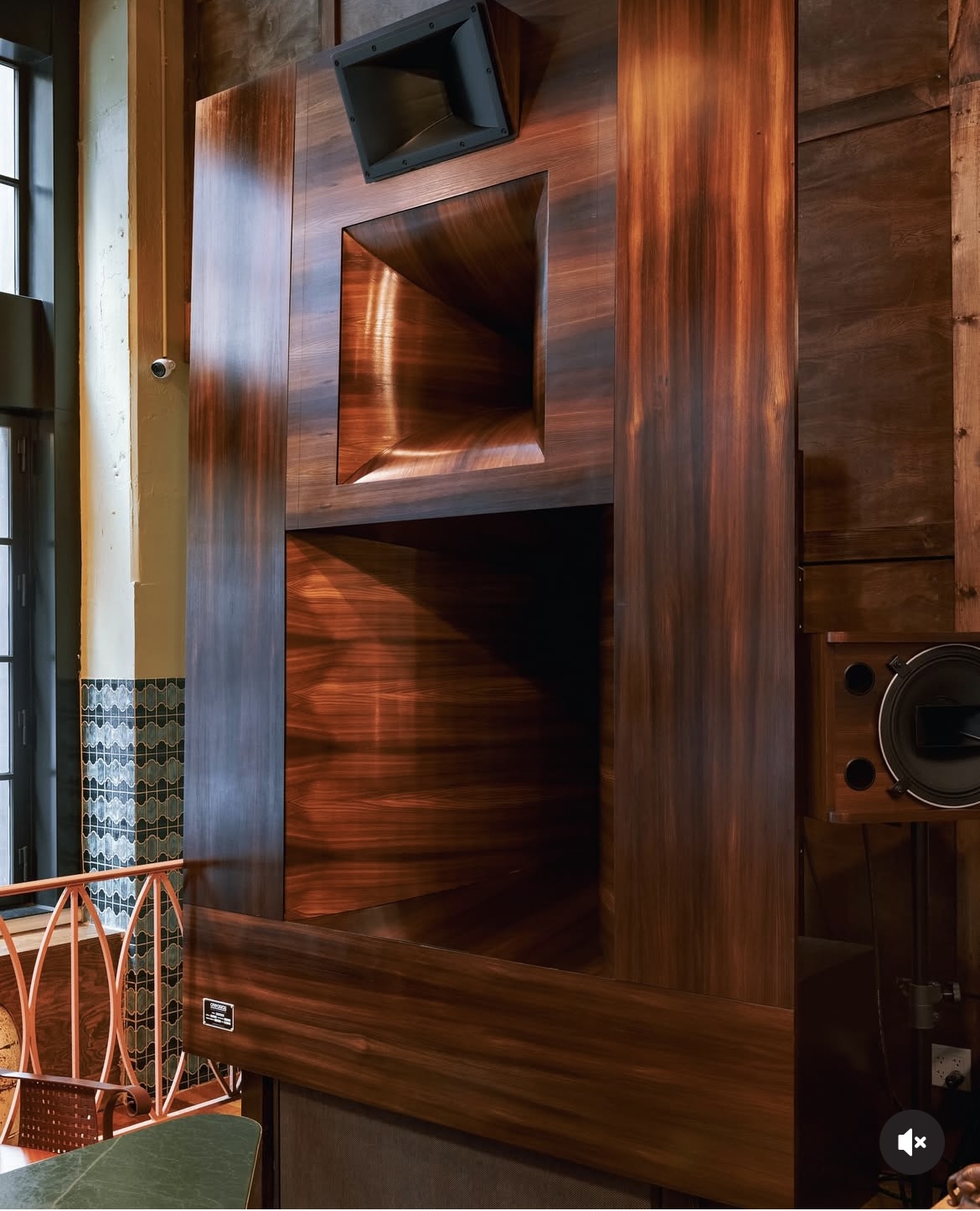 A lot more info on the Floating Points sound system here, they mention a £200 Italian driver as a good alternative to the Altec 515, my guess is Faital Pro but no idea which driver.