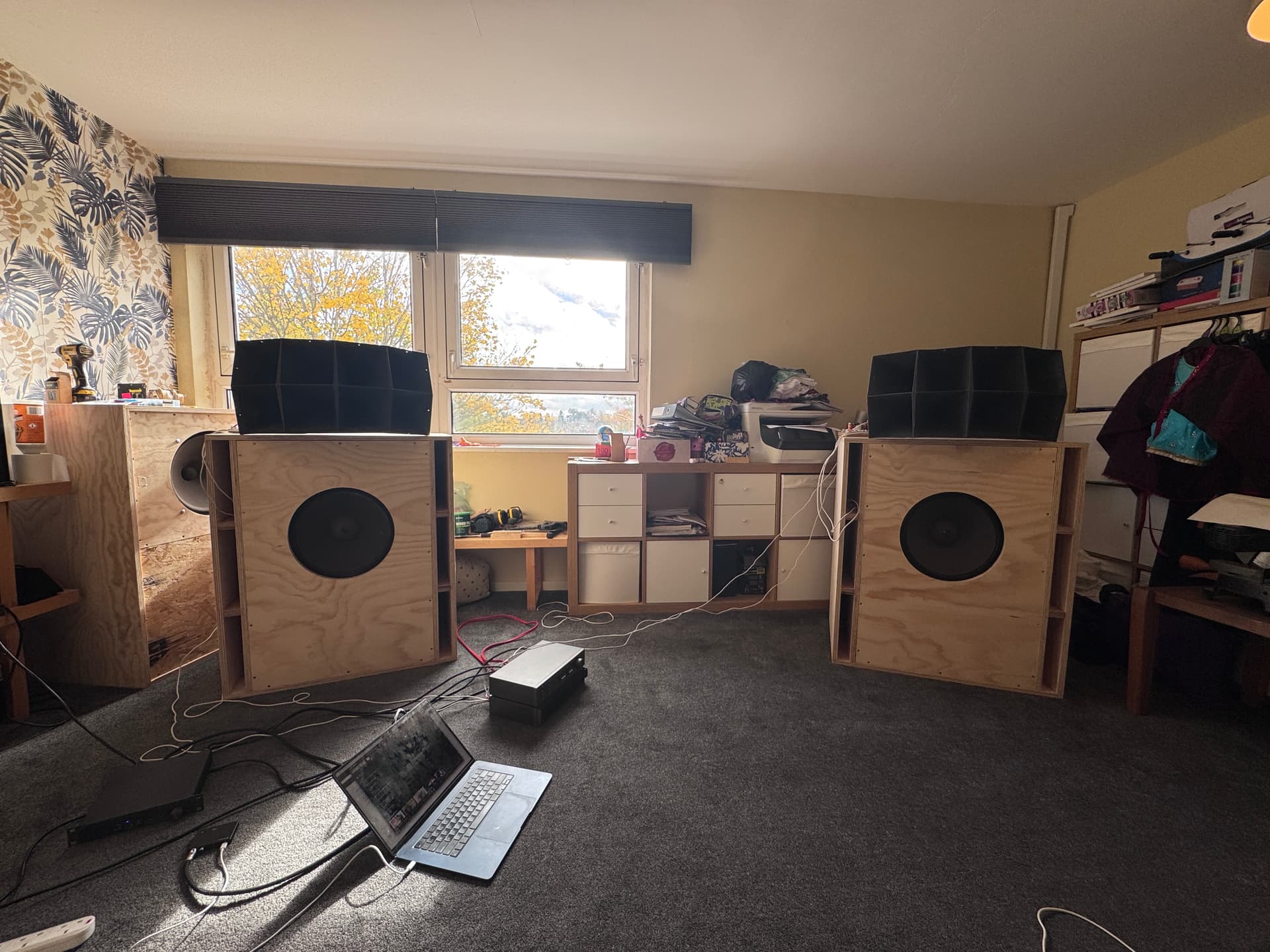 Maybe a pair of w onken next, extra pair of bass drivers in parallel to increase efficiency, take some of the padding down away from the tweeters and mids. Then to find a pair of 803b instead of the 805b horns to get the compression drivers playing a little bit lower.