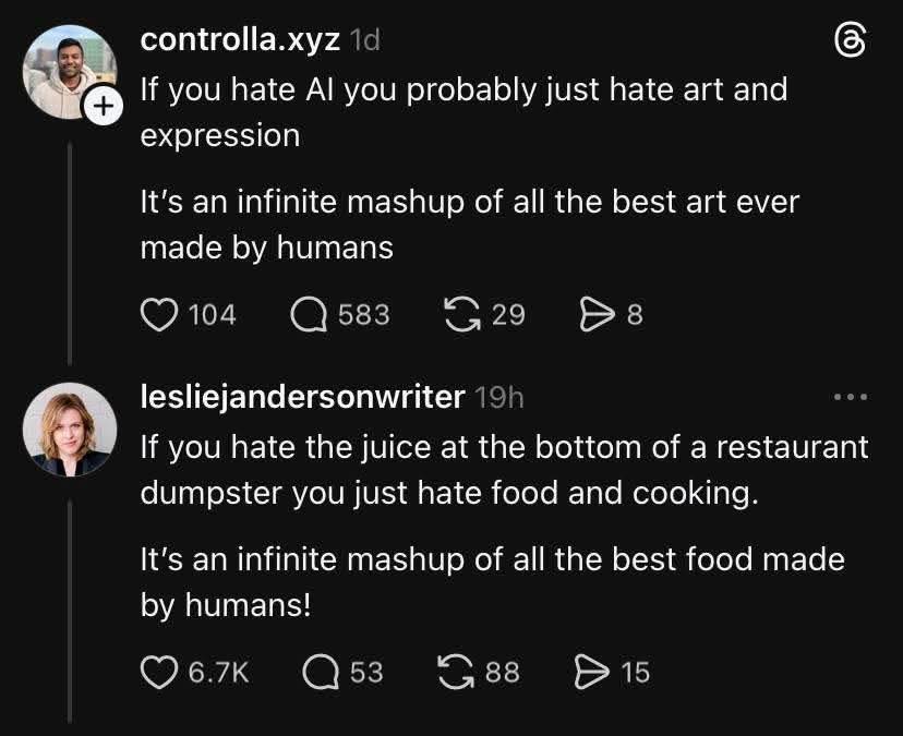 I guess that explains why they think it’s OK if their AI droids do pretty much the same. I’m sure it’ll work out just fine …