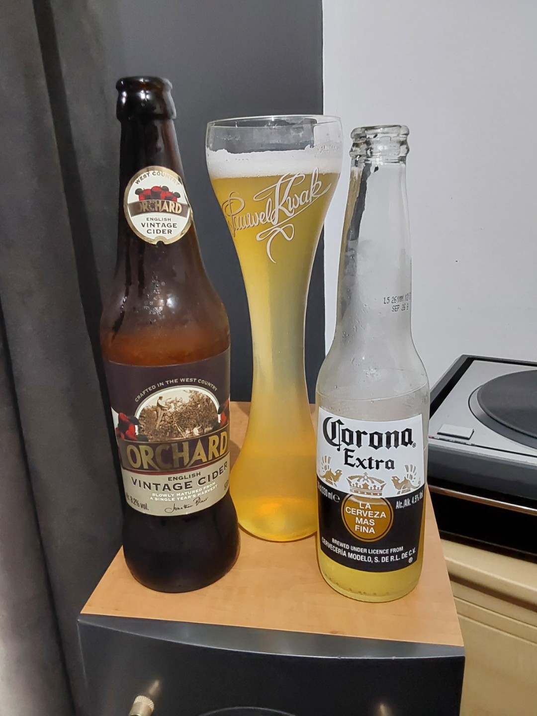Wait, are you drinking a mix of cider and Corona out of Kwak glass?!