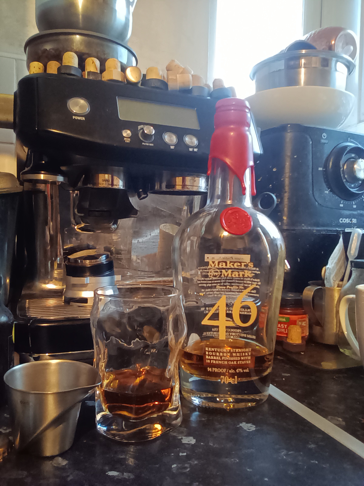 The Bourbon is Makers Mark stave profile no.46 a more upmarket Bourbon than their standard offering.