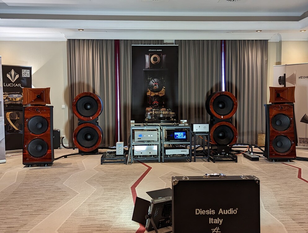 Despite the actual speakers being absurdly large, the Acapella room was indeed very good. Although the guy needs to step back from exclusively playing jazz. At least it wasnât all Chris Barber parp-parp-parp like the last Acapella demo I saw there.