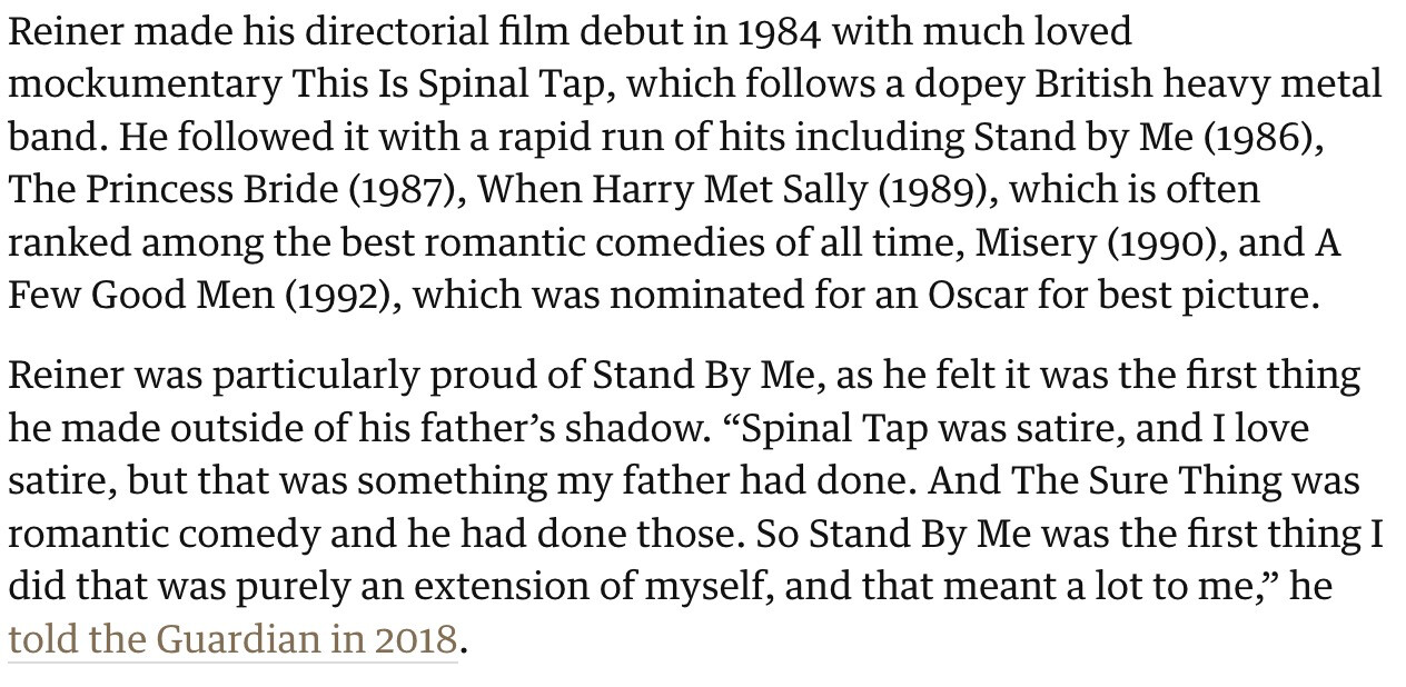 Sad news. This Is Spinal Tap is one of my favourite films, and I have a real soft spot in my heart for Stand By Me (Chomper! Sick balls!!