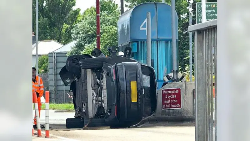 One way road blocked. When asked by motorists if it was possible to squeeze through- well you can guess the answer…