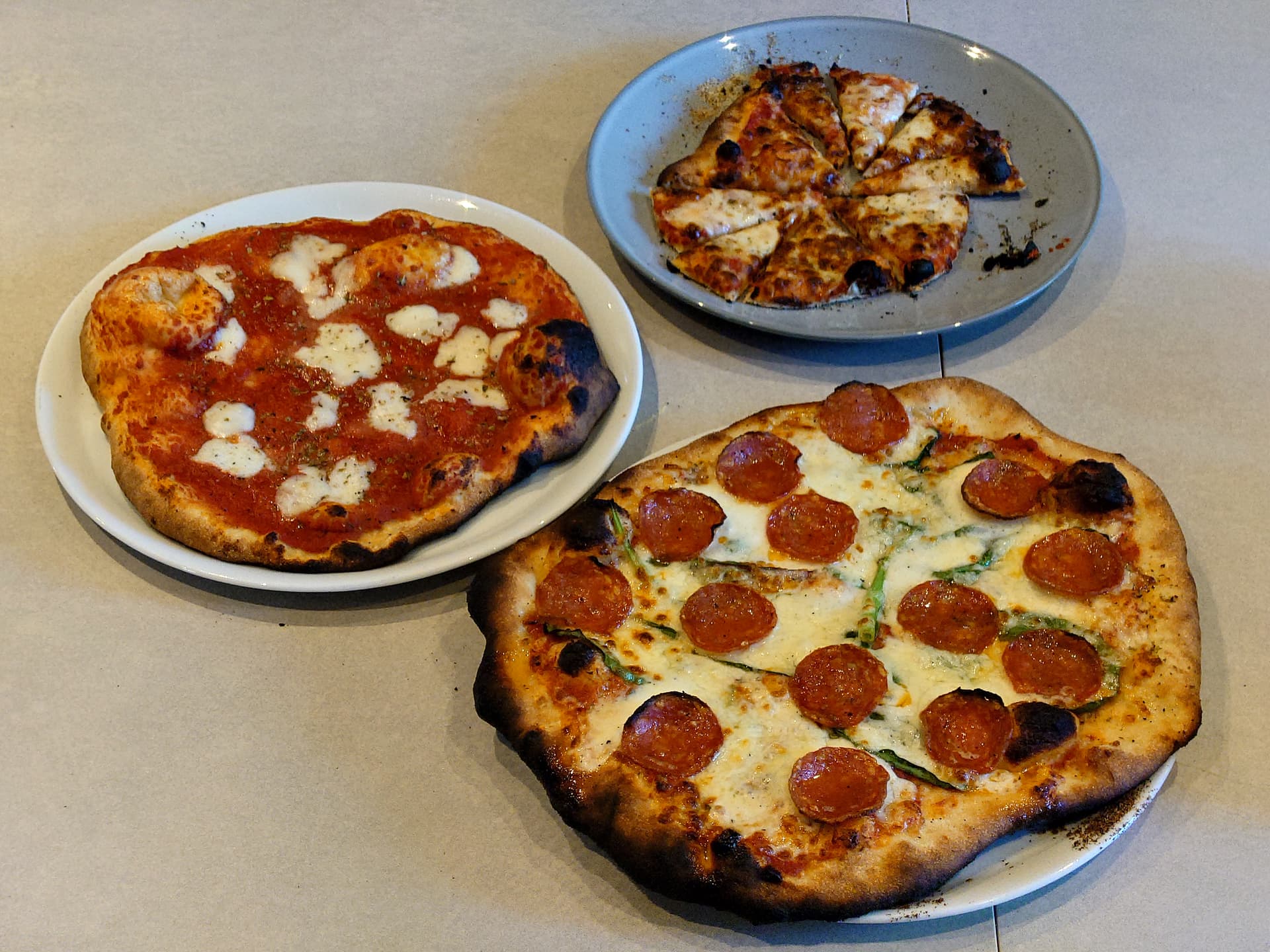 Glorious day sitting in the garden with fantastic pizza. I understand that the bases were made with spelt flour and were excellent.