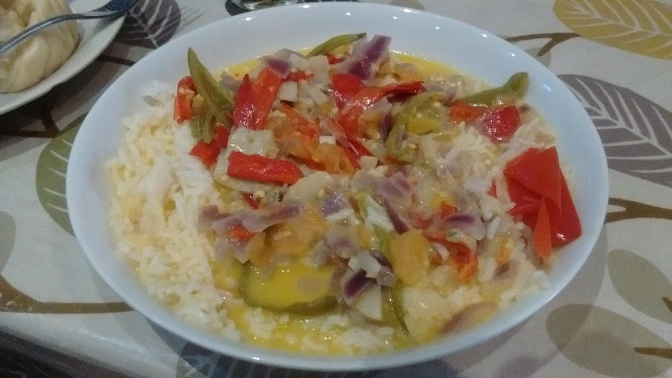 FoL2 & GF (now back from their travels) made us tingbo (a steamed dumpling bread thing from Tibet) along with ema-datse a Bhutanese cheese chilli stew.