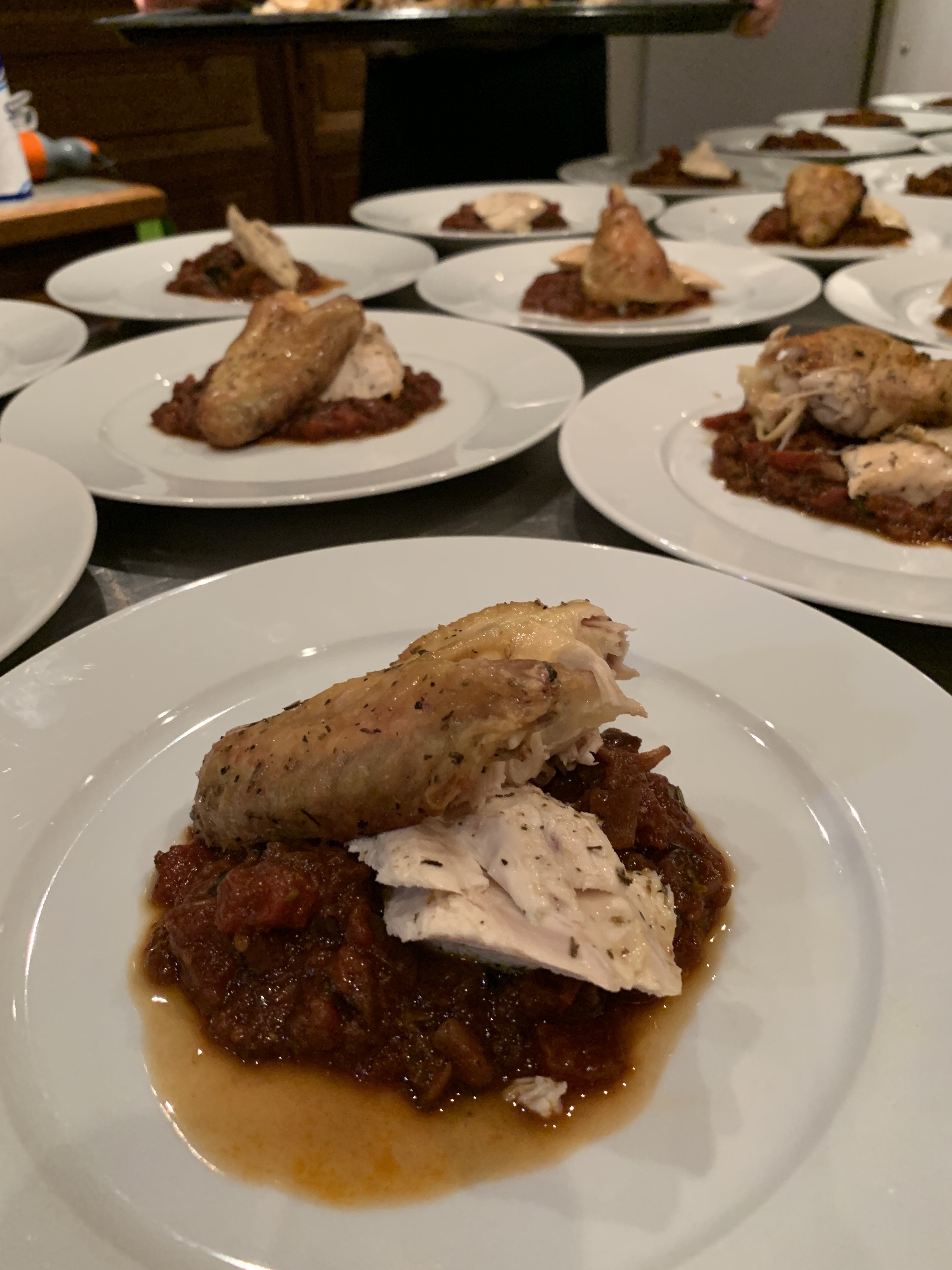 Main - Whole chickens Provençale style, ratatouille, roasted new potatoes