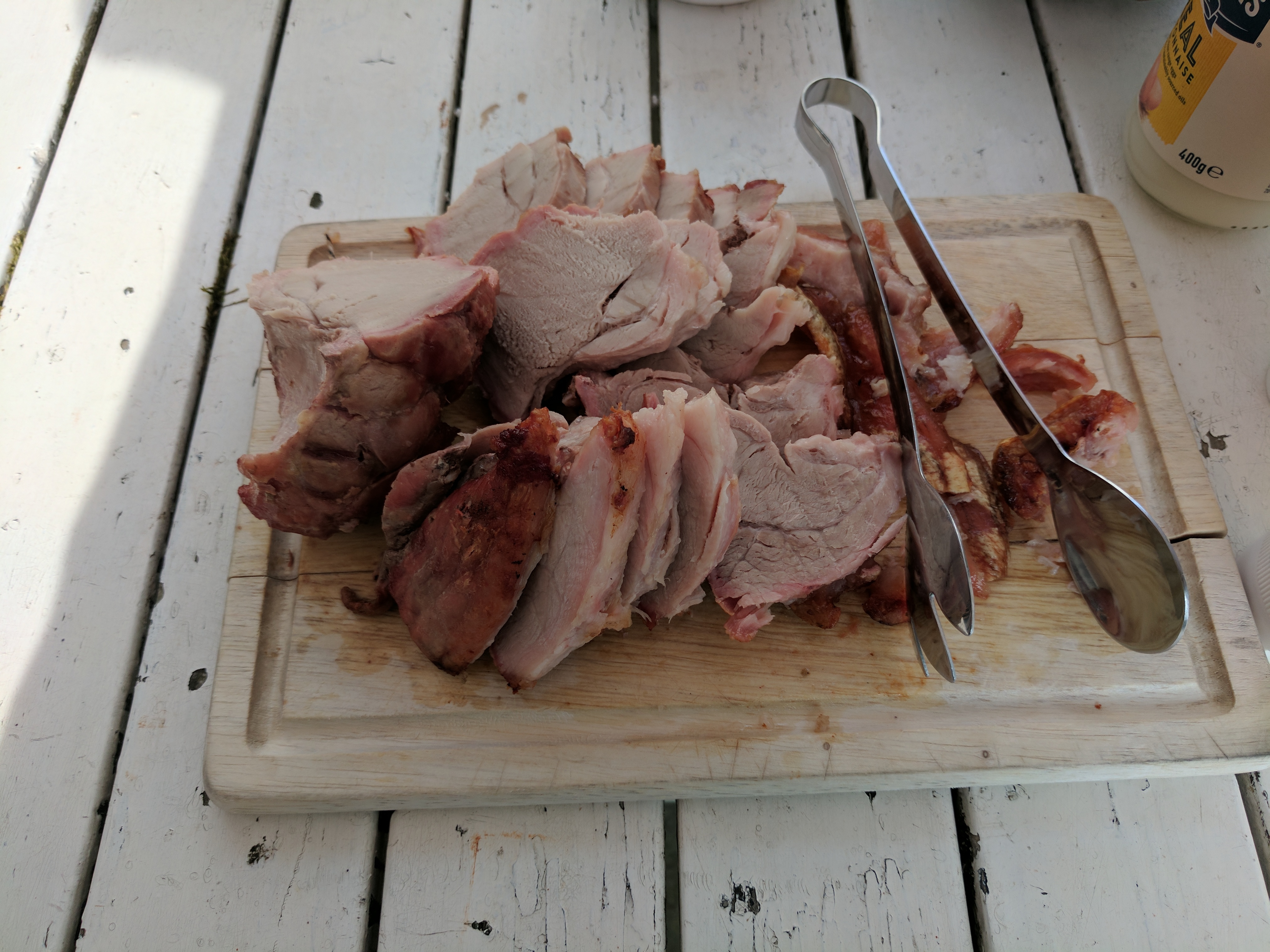 In the garden with the Italian family. Terry gets to cook the BBQâd meat which is an honour as they are quite poor. Veal, chicken, and homemade sausages for 20 people. No pressure then